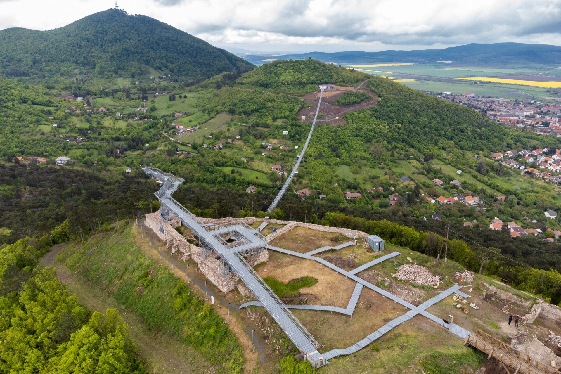 Az új híd a Szár, és a Vár-hegyeket köti össze. Előtérben a Sátoraljaújhelyi-vár és a 2022-ben ráépített kilátó