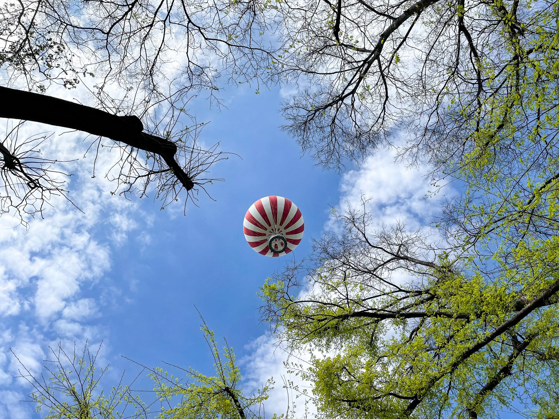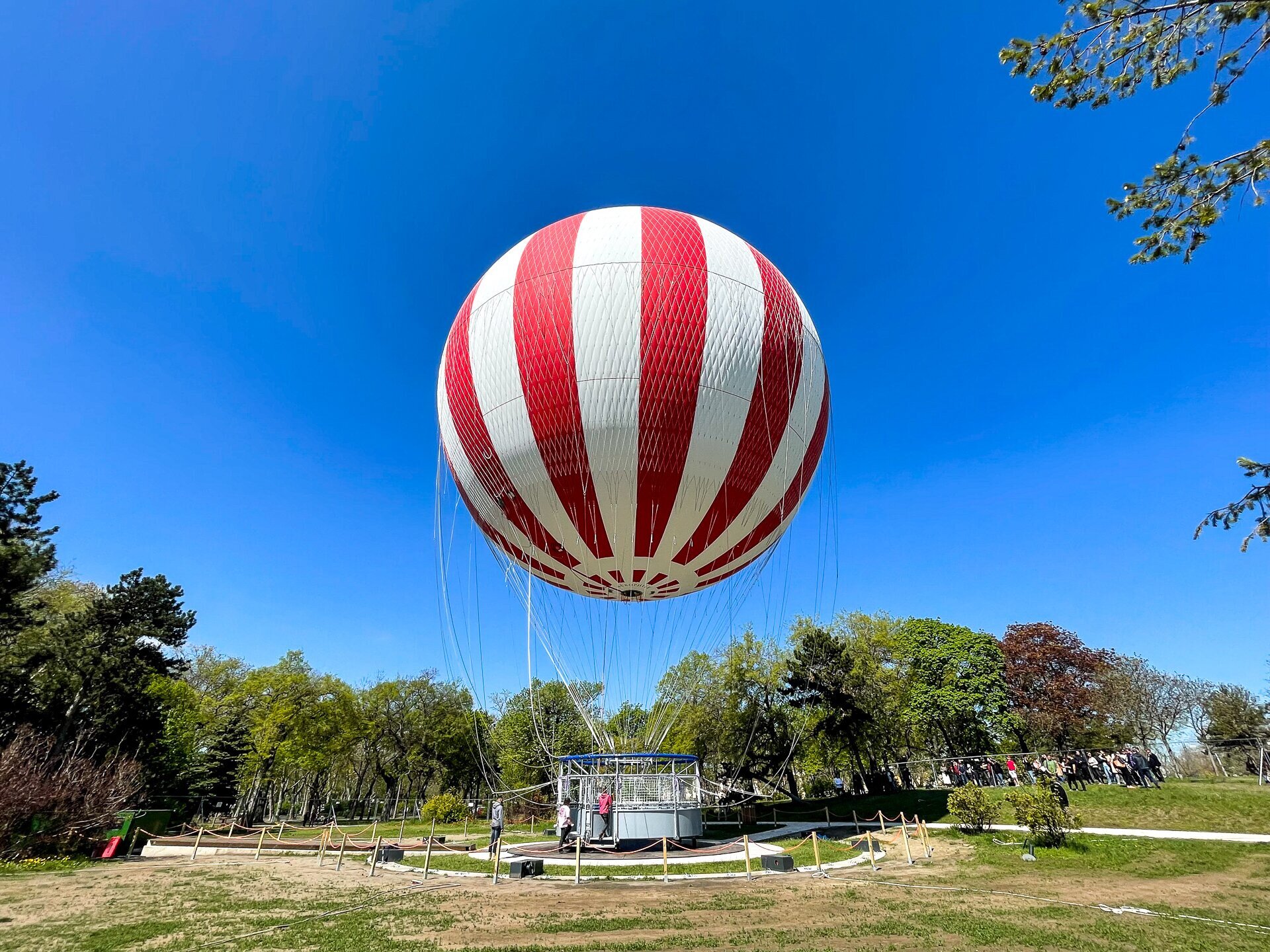 A ballon formája és színvilága – a Városliget nagy játszótéren lévő kistestvéréhez hasonlóan – Szinyei Merse Pál Léghajó című festményét idézi