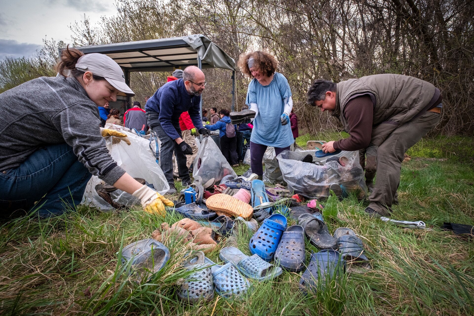 Egy nagy kupac elhagyott strandpapucs is összegyűlt, amelyek végül szintén zsákba kerültek