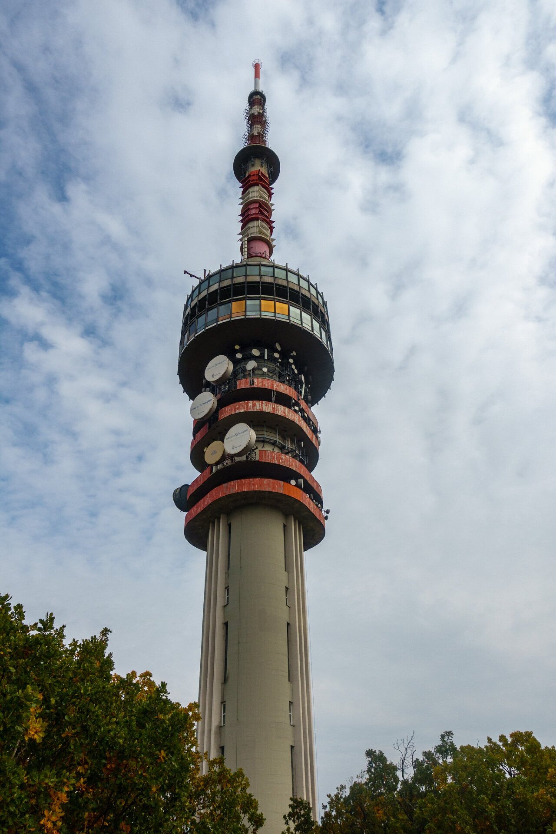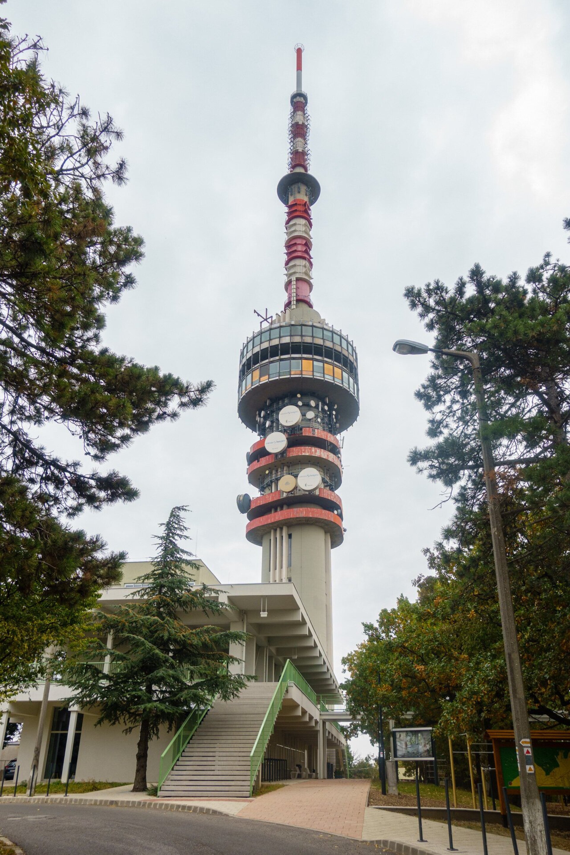Az ikonikus tévétorony betonkolosszusa, tövében a nemrégiben átadott turisztikai központ