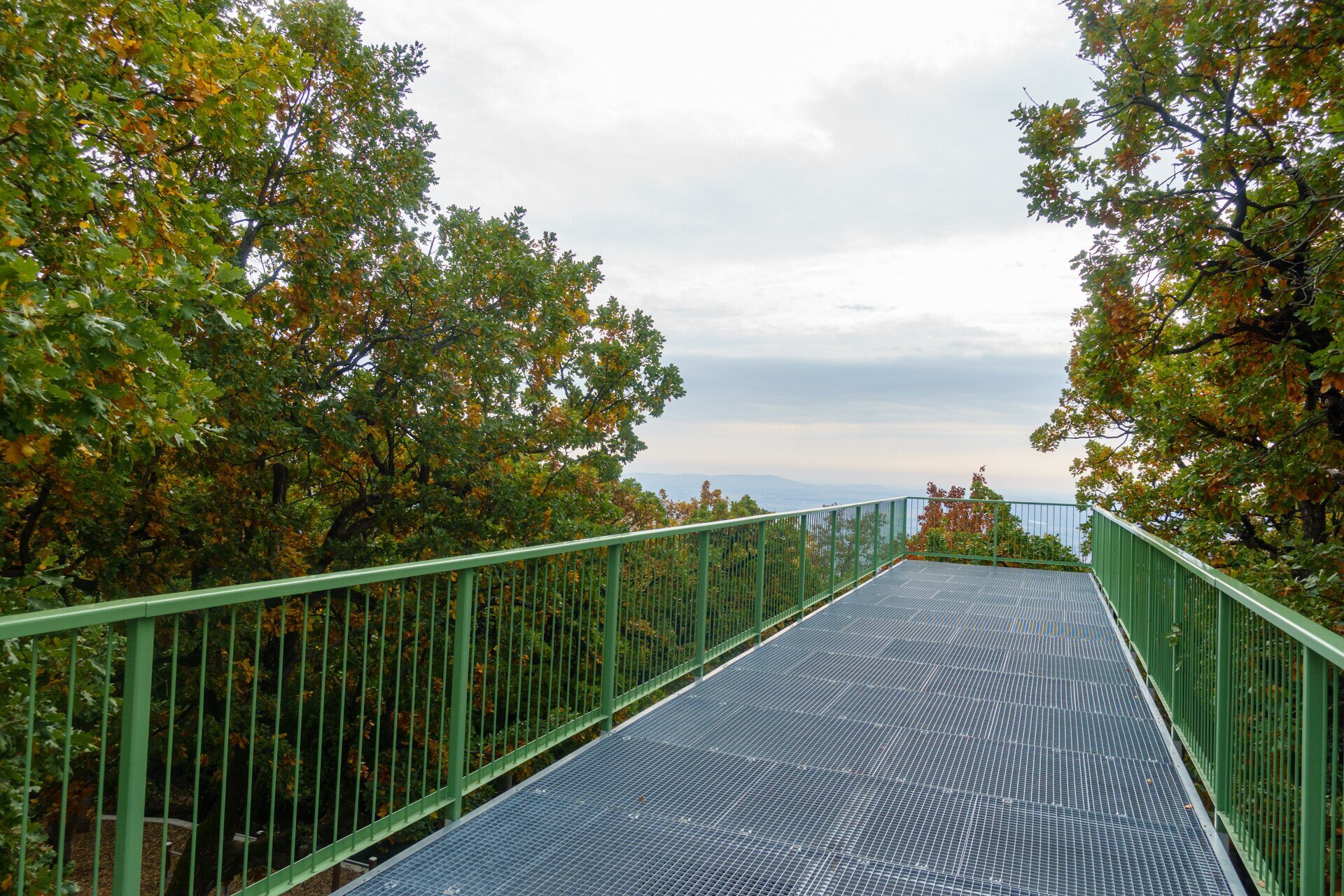 A lombkoronastég, ahonnan a lombok közé be, a városra meg ki lehet nézni