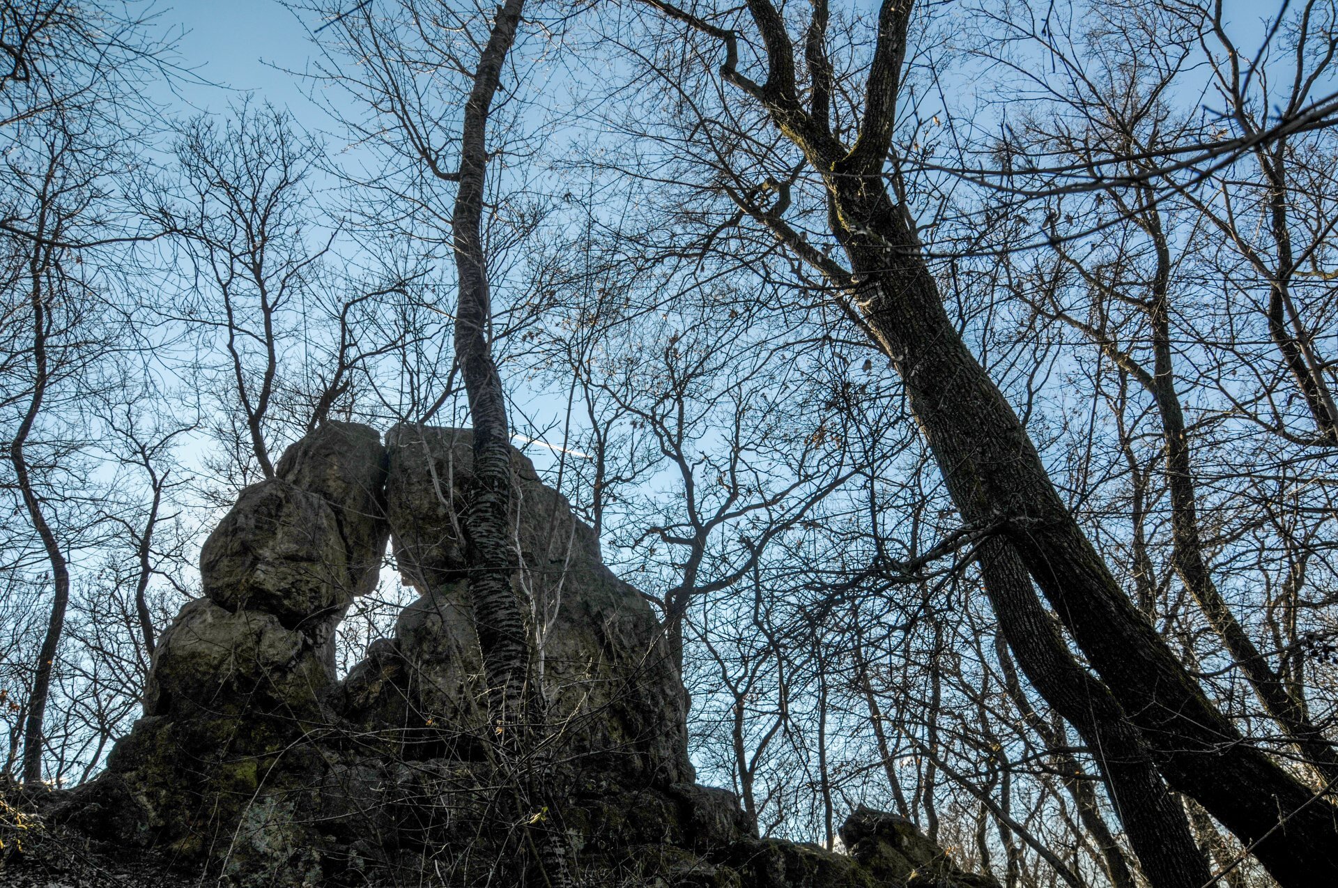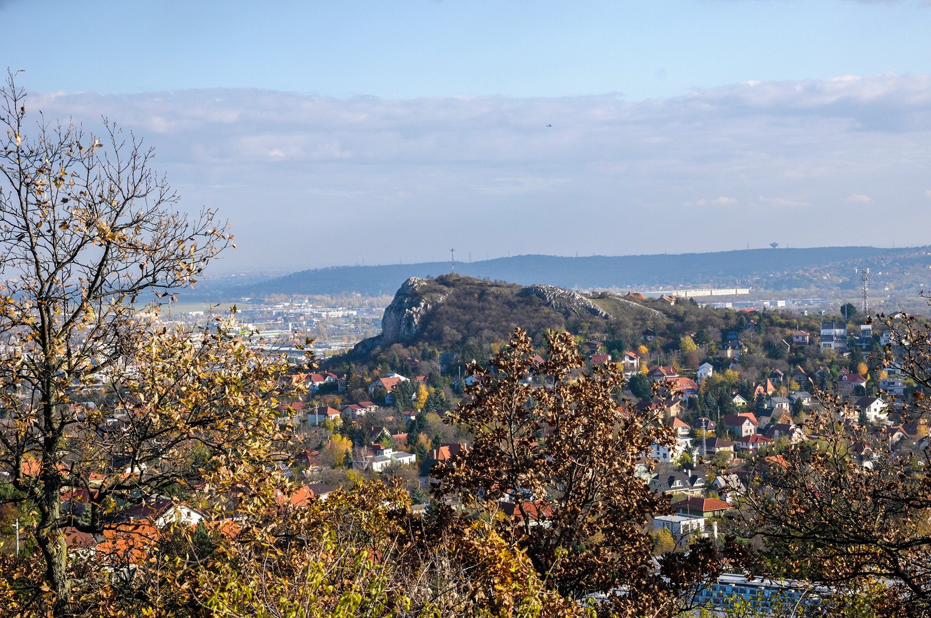 Pirkadat Sirok felett, kilátás a Törökasztalról a Barát- és Apáca-sziklára, a várra és a Mátrára
