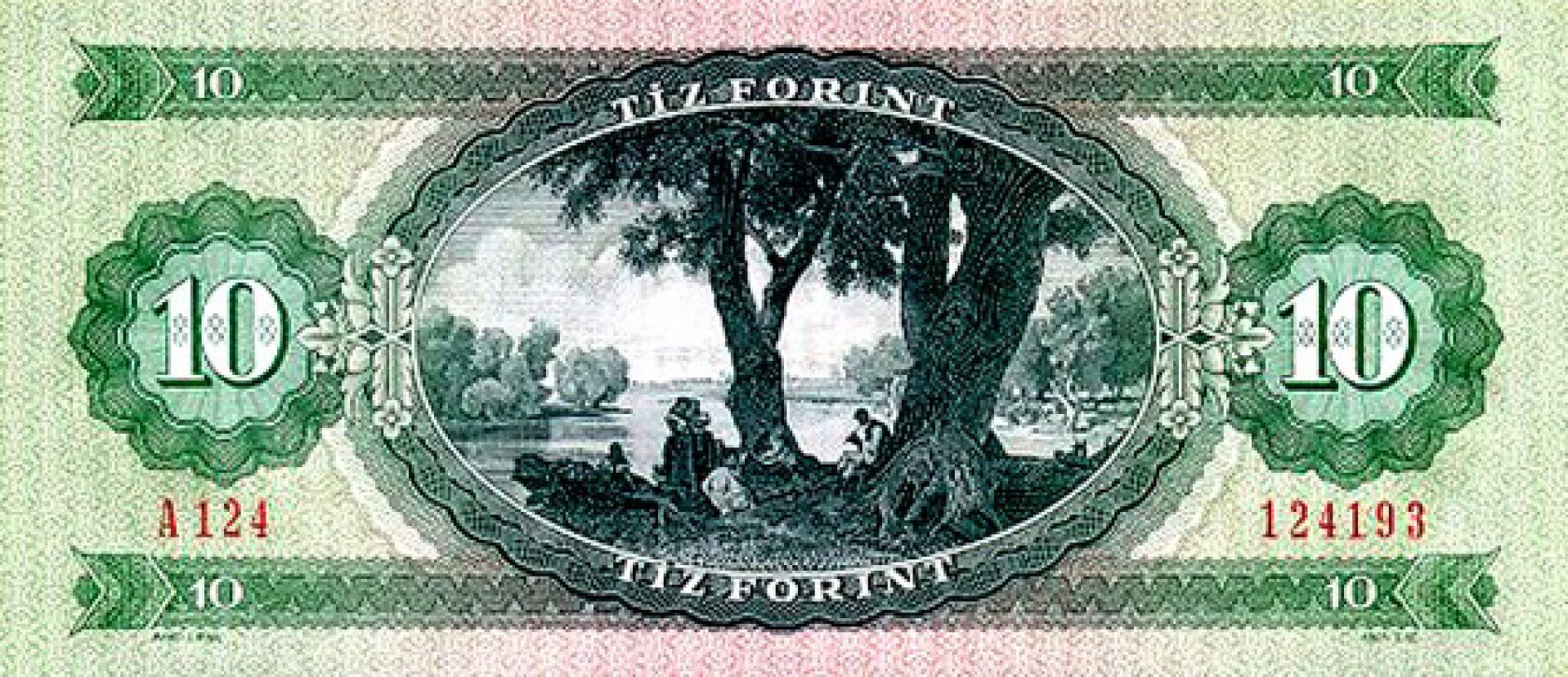 A régi 10 forintos papírpénz Jankó János Folyóparti táj c. képével, amin a Luppa-sziget is feltűnik