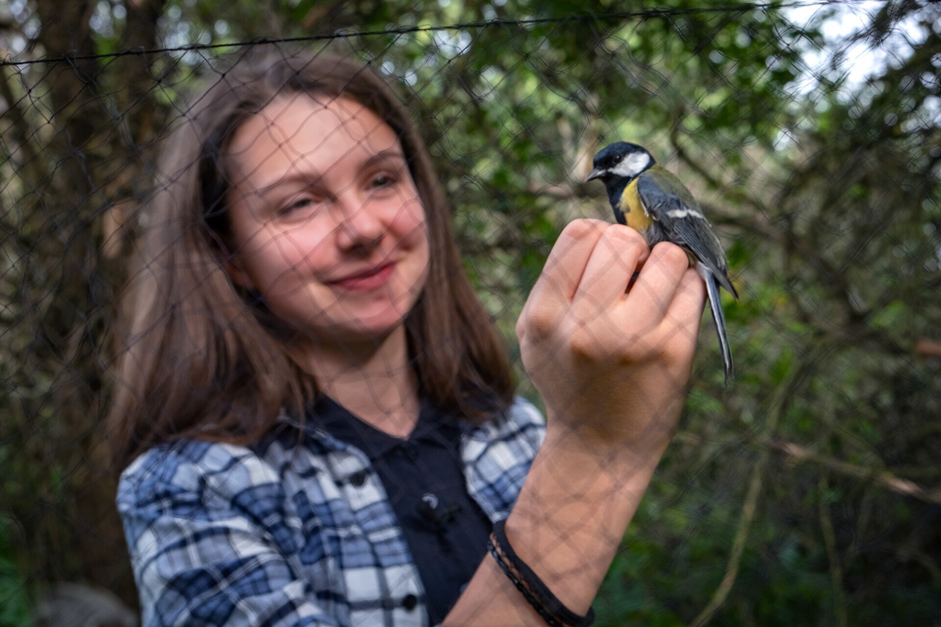 Széncinege már kiszabadítva a hálóból