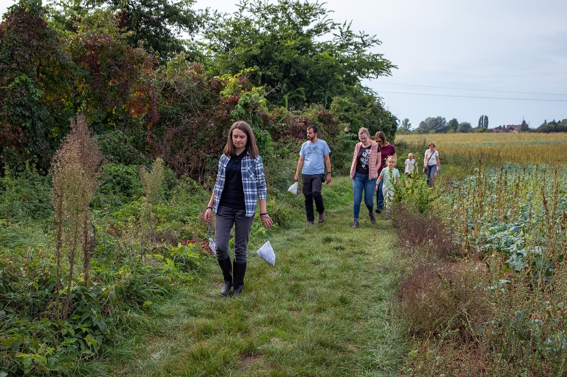 A hálóból kiszedett madarakat kis, vékony anyagú zsákokba rakva viszik a gyűrűzés helyszínére
