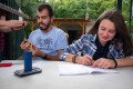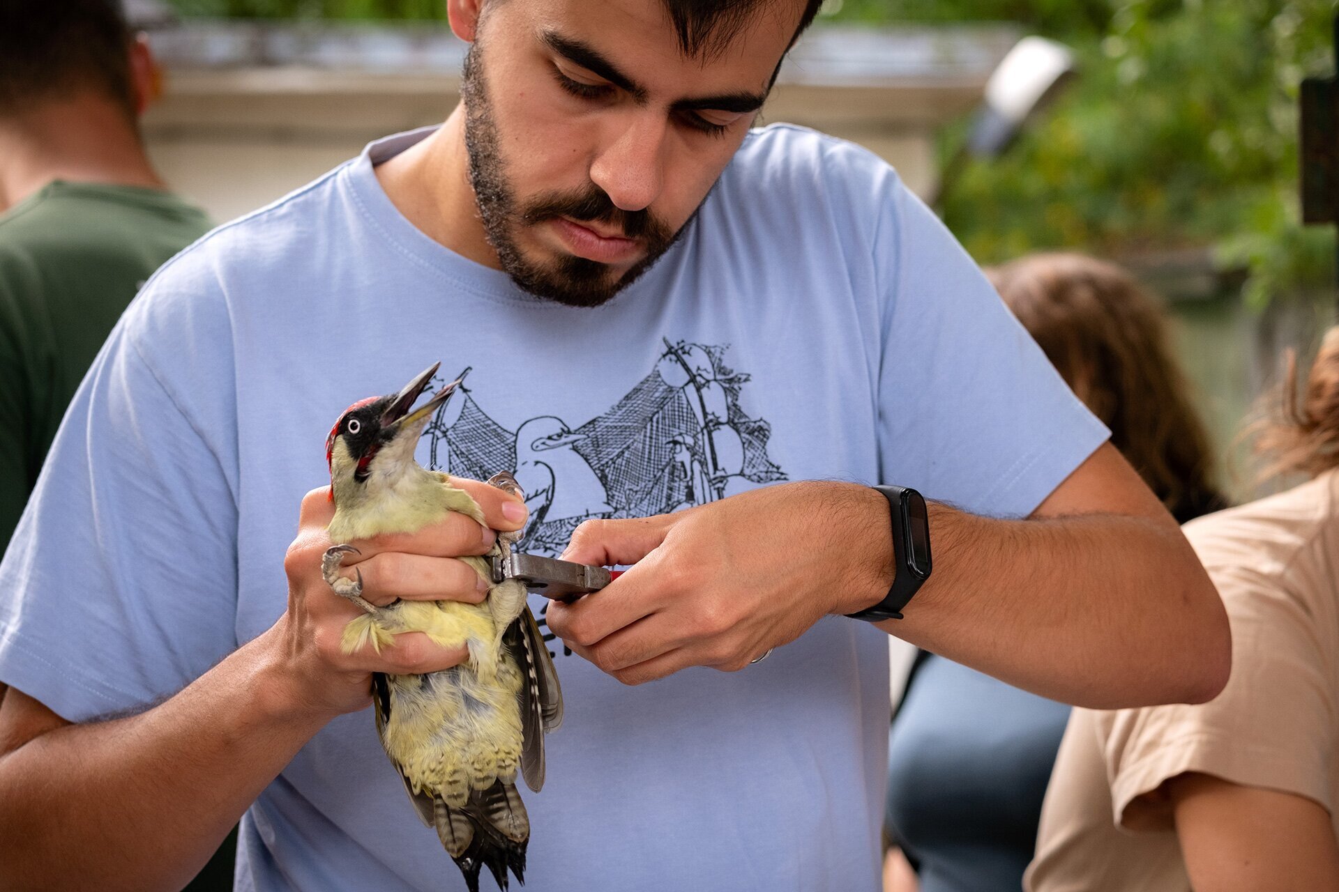Ez a zöld küllő is kap gyűrűt a lábára