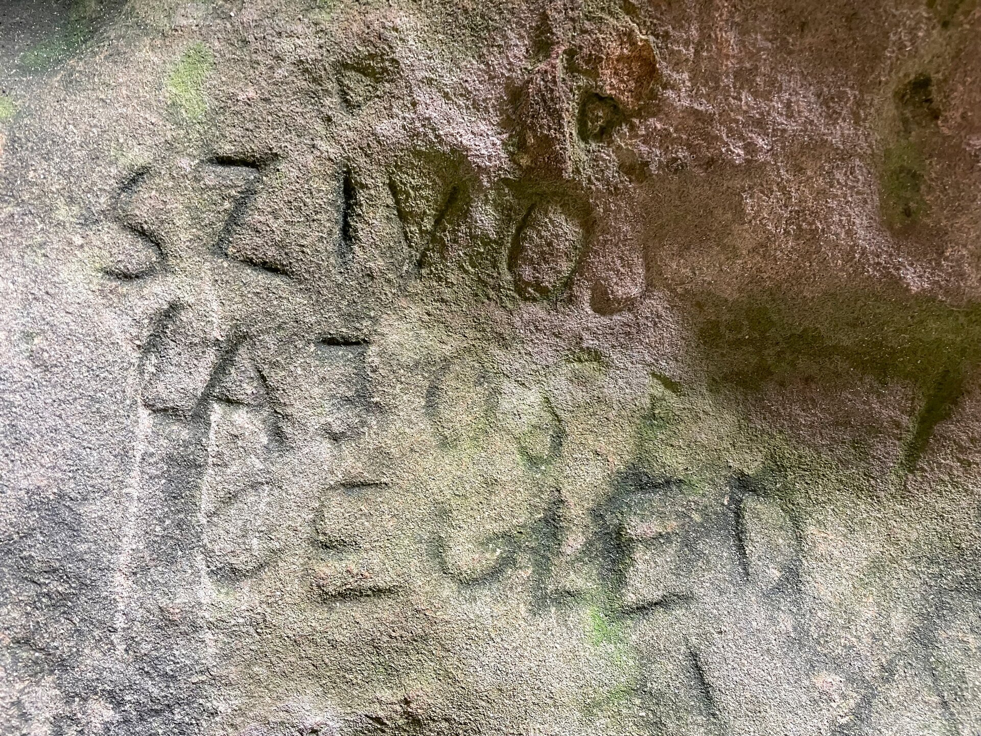 A homokkőfal alsóbb része keményebb, sötét színű, míg a felső egyharmada világosabb és lazább szerkezetű, ezekben a rétegekben