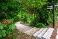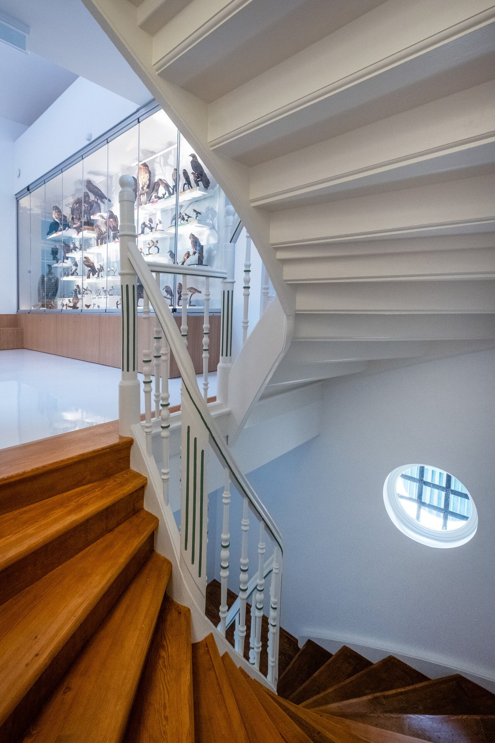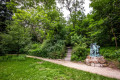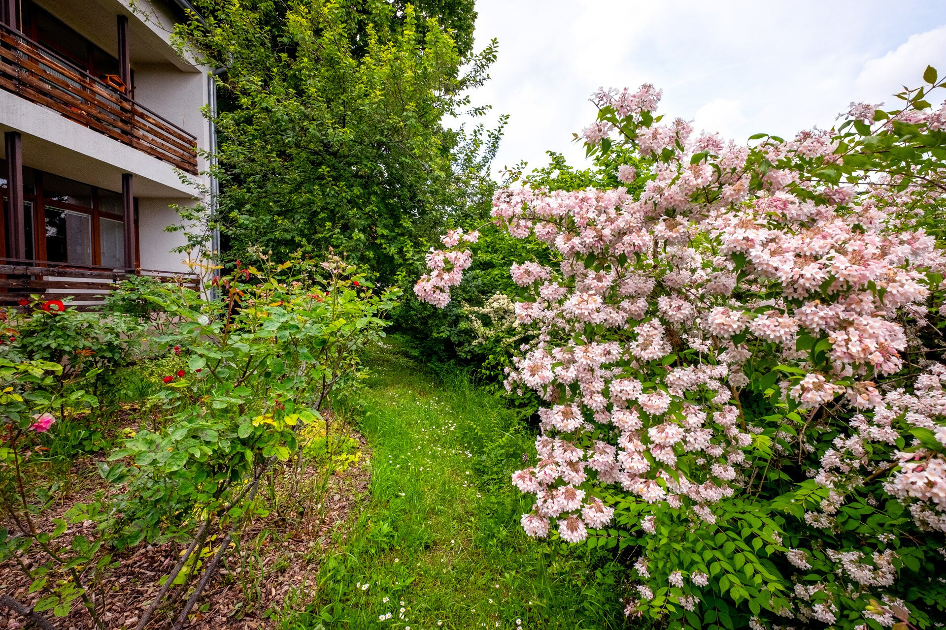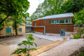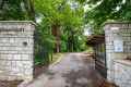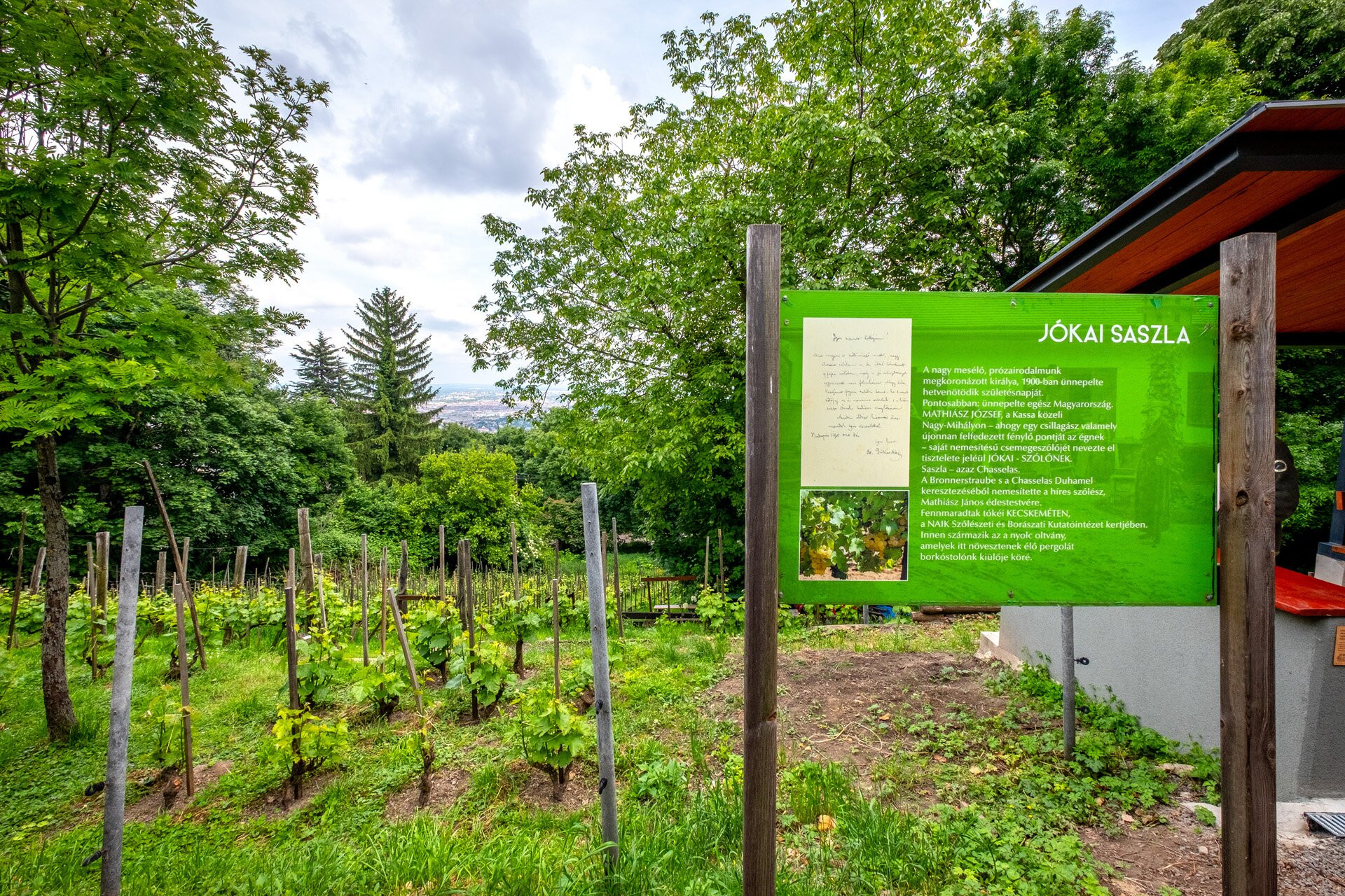 Balra a felújított Steindl-villa, jobbra az új látogatóközpont épülete