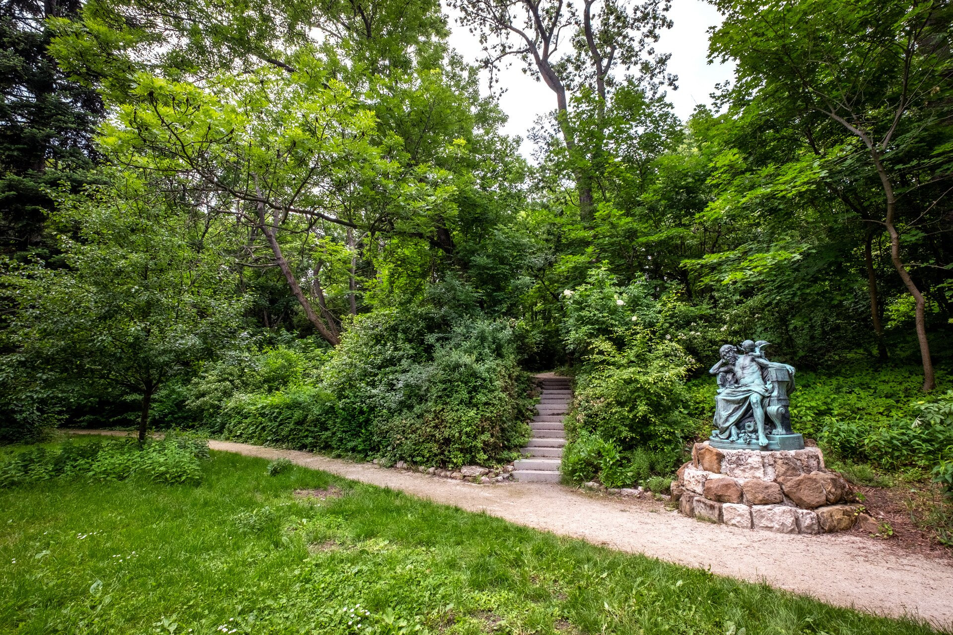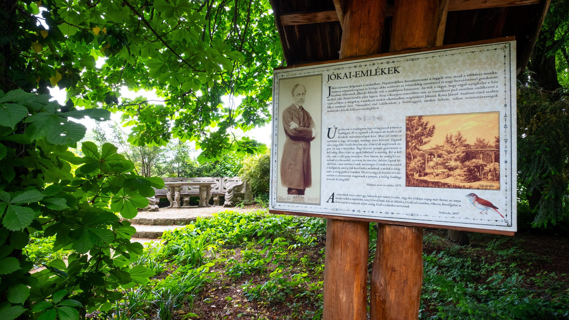 Anakreón, az ókori görög költő testére Jókai fejét illesztette Róna József szobrász. Jókai fülébe Ámor suttog