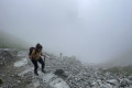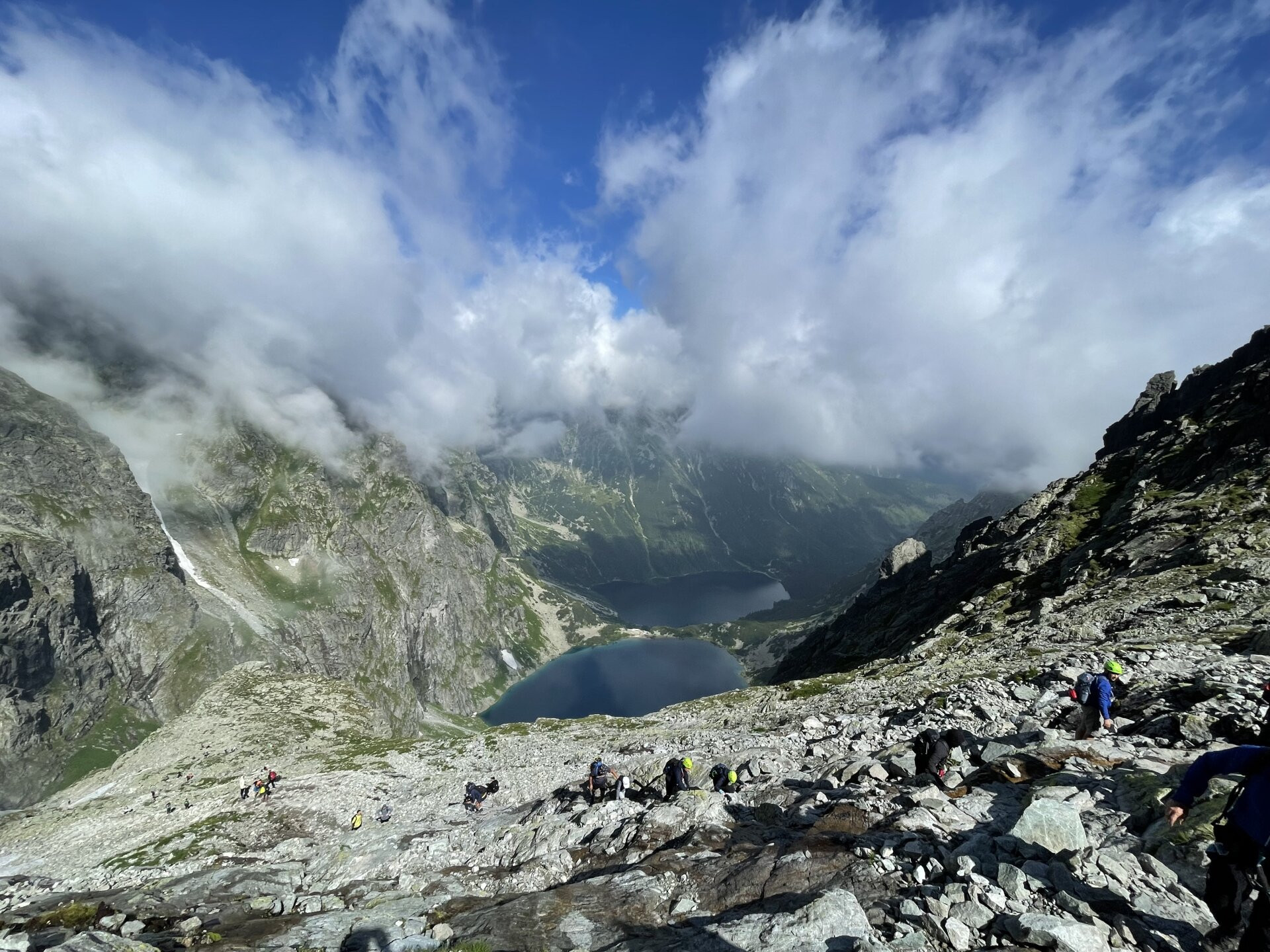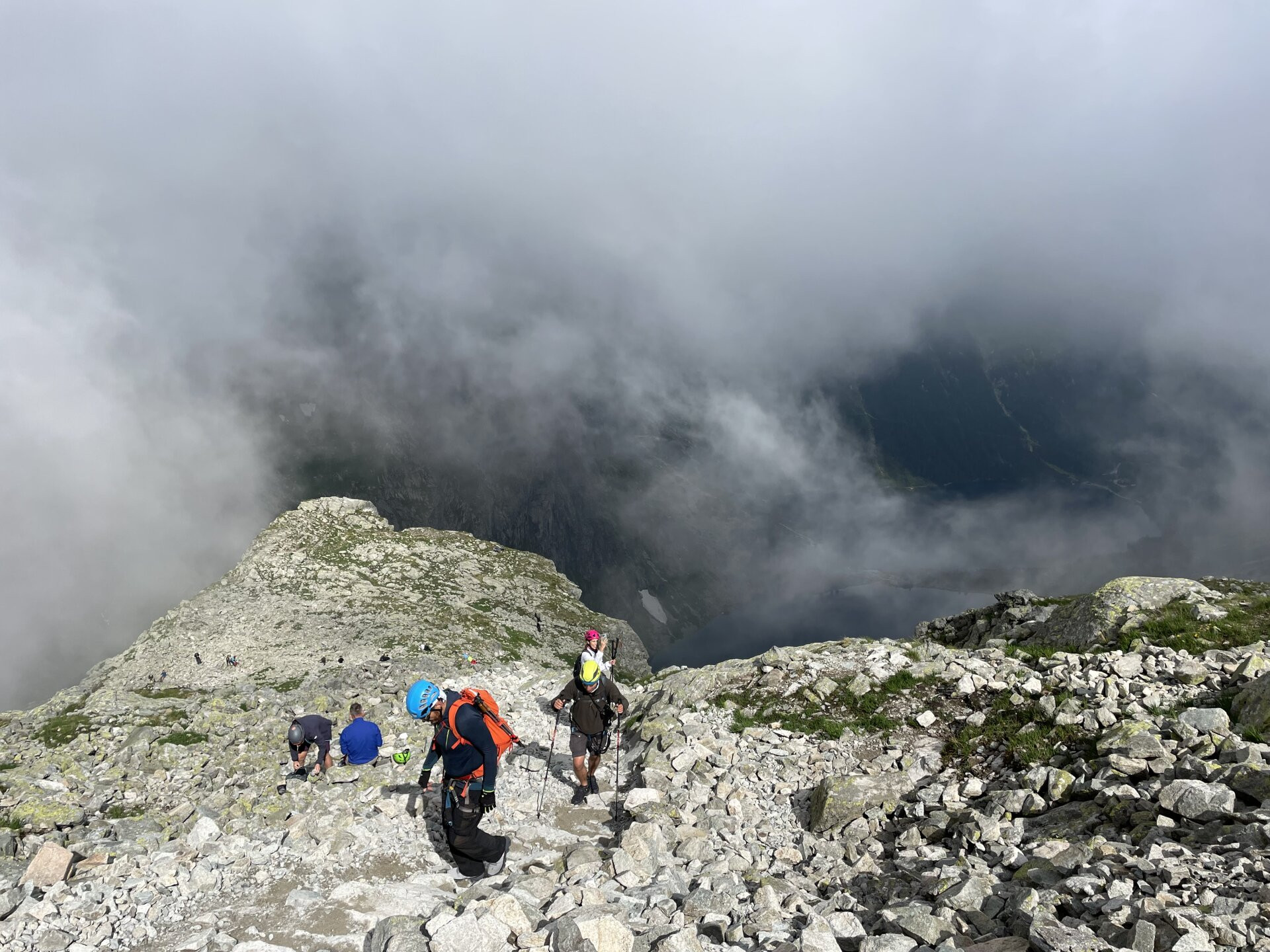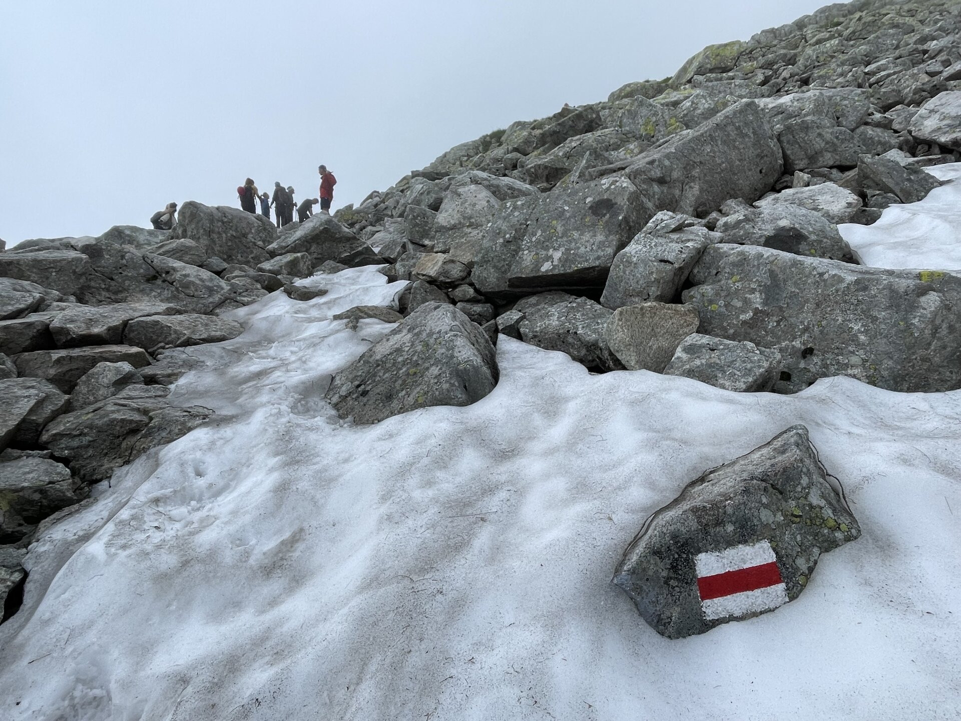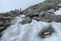 Lefelé a szlovák oldalon, ez a rész kevésbé meredek, így láncok sincsenek a csúcs közelében