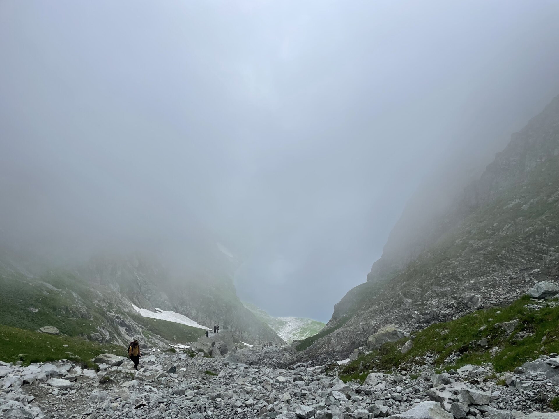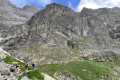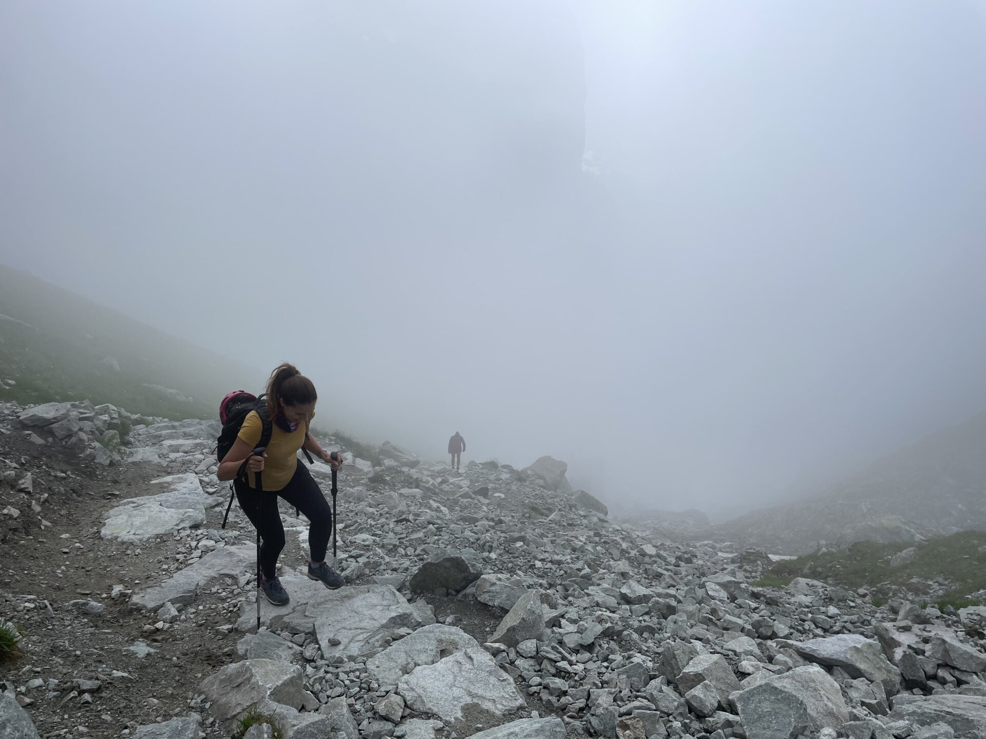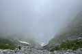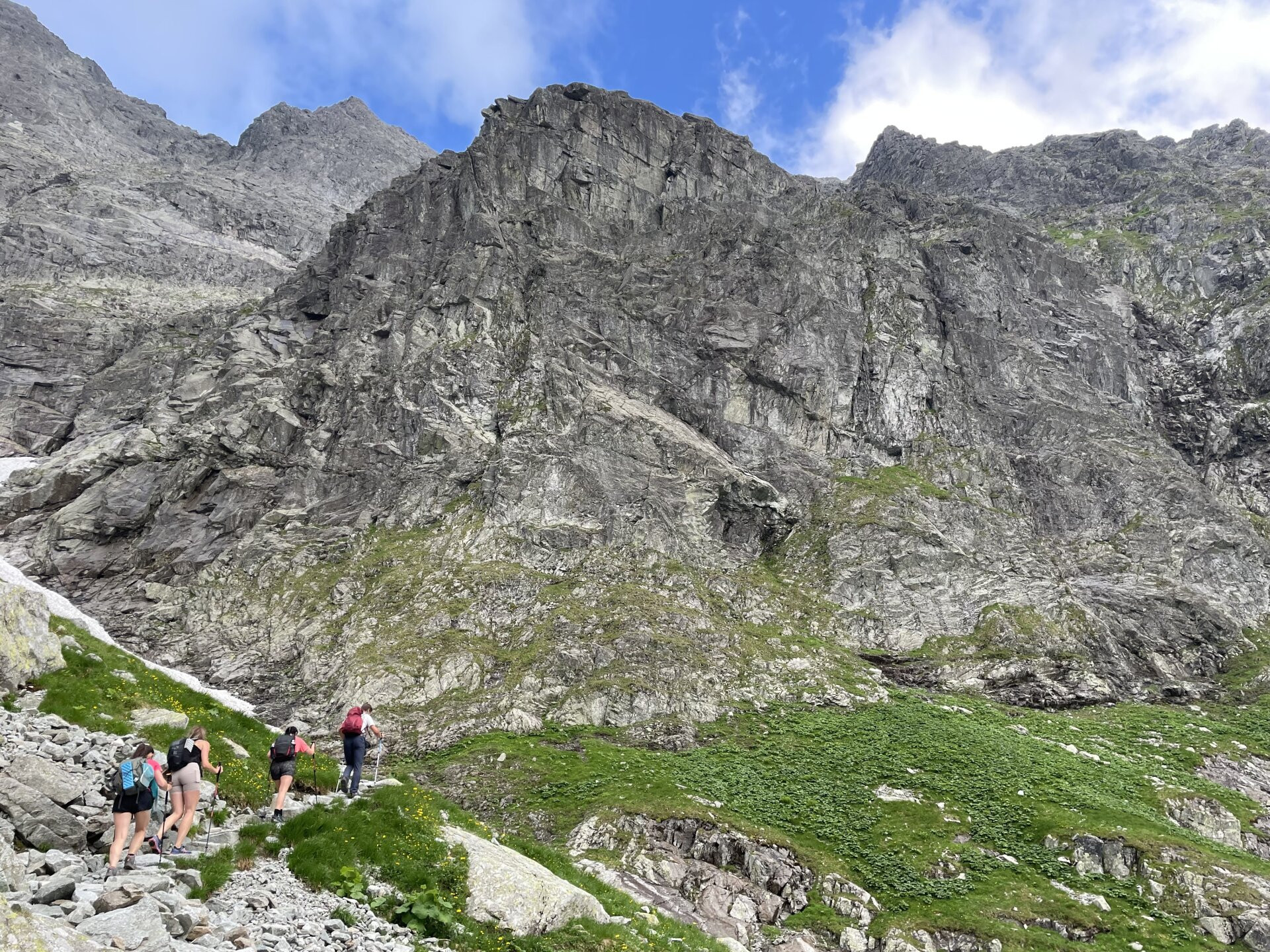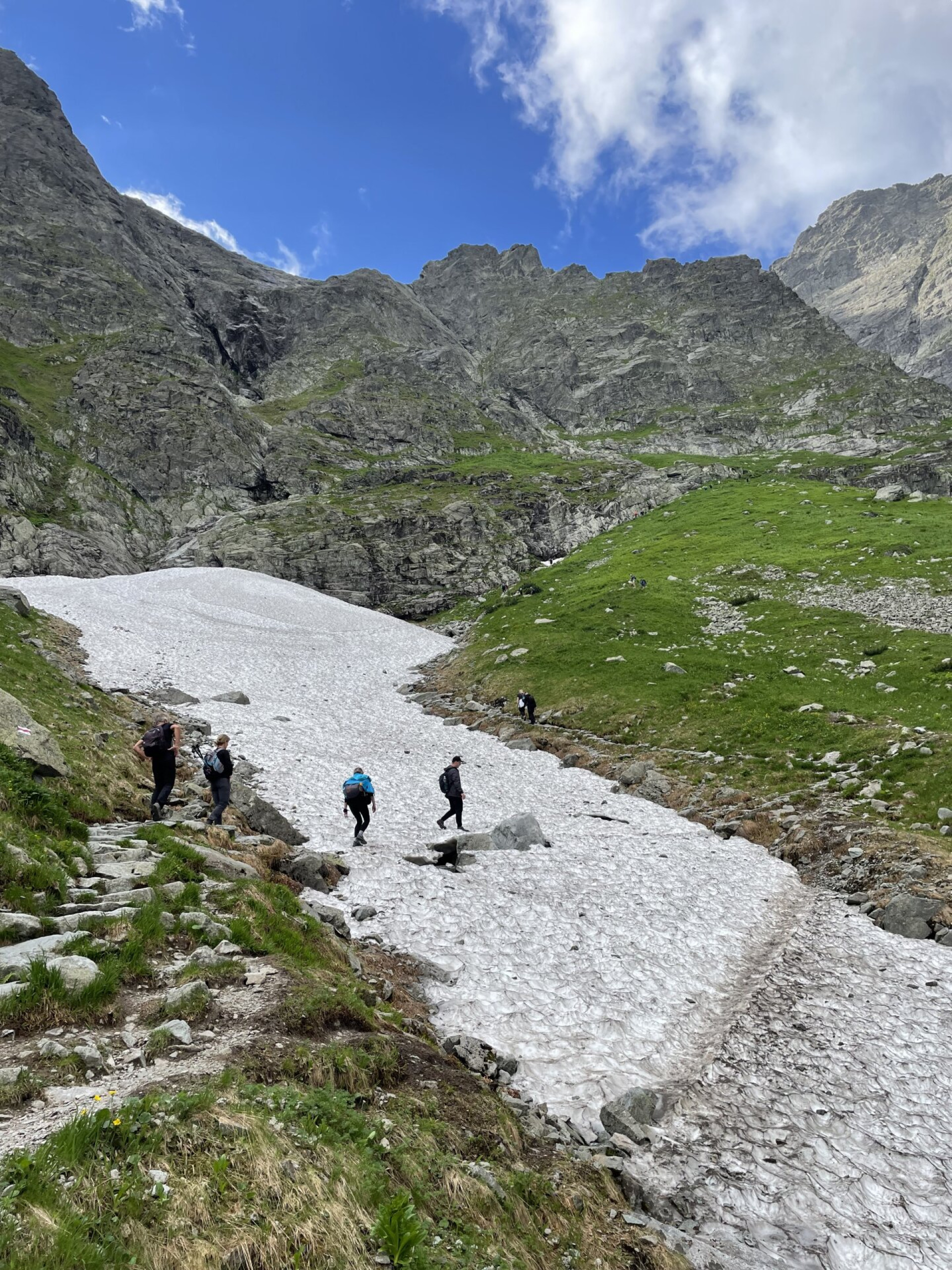 Lefelé a szlovák oldalon, ez a rész kevésbé meredek, így láncok sincsenek a csúcs közelében