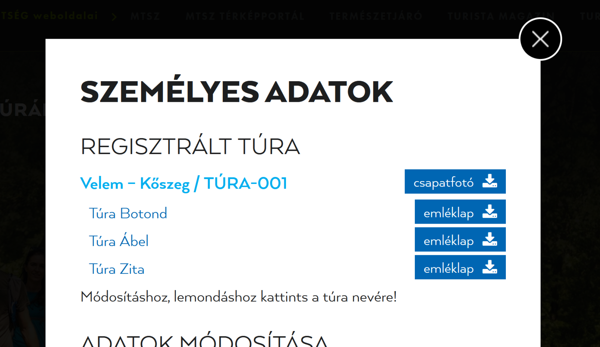 Ezen a példán egy felnőtt és két gyerek emléklapja érhető el, valamint a csapatfotós emléklap