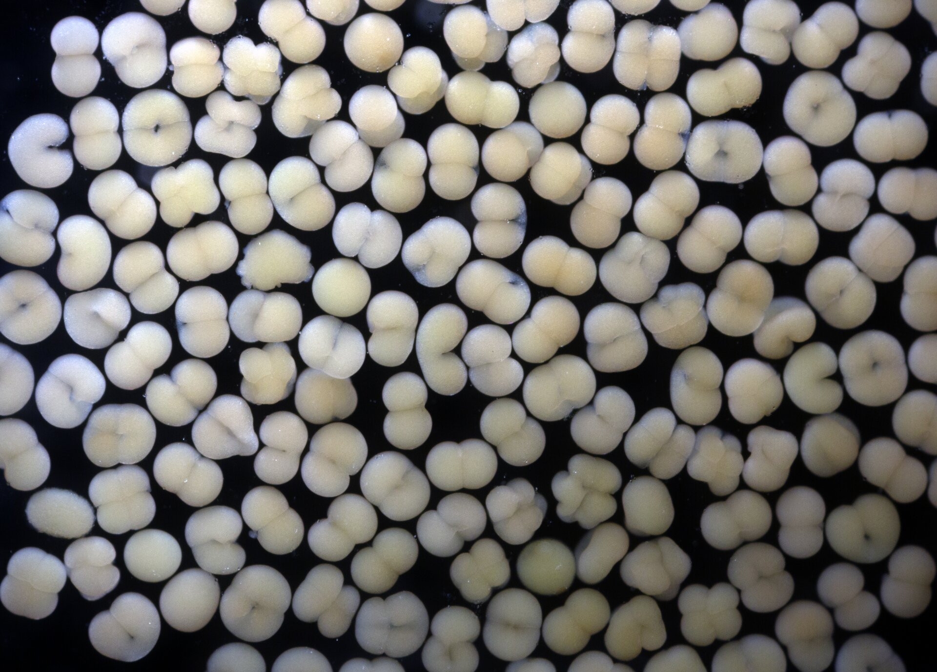 Homophyllia australis 'Scoly' embriók, amelyek első és második sejtosztódáson mennek keresztül in vitro