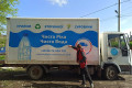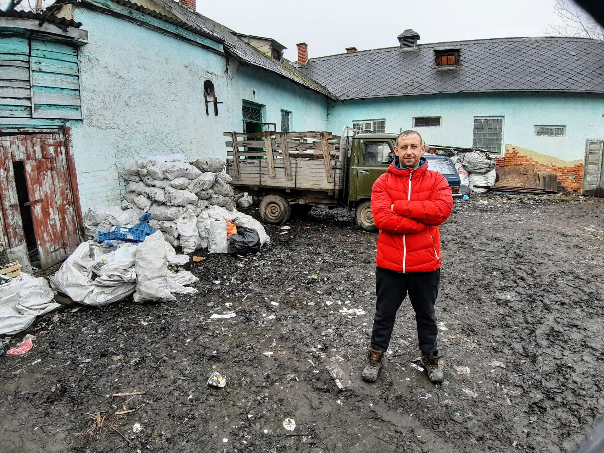 Francz Béla hulladékválogató telephelyén a régi UAZ teherautójával