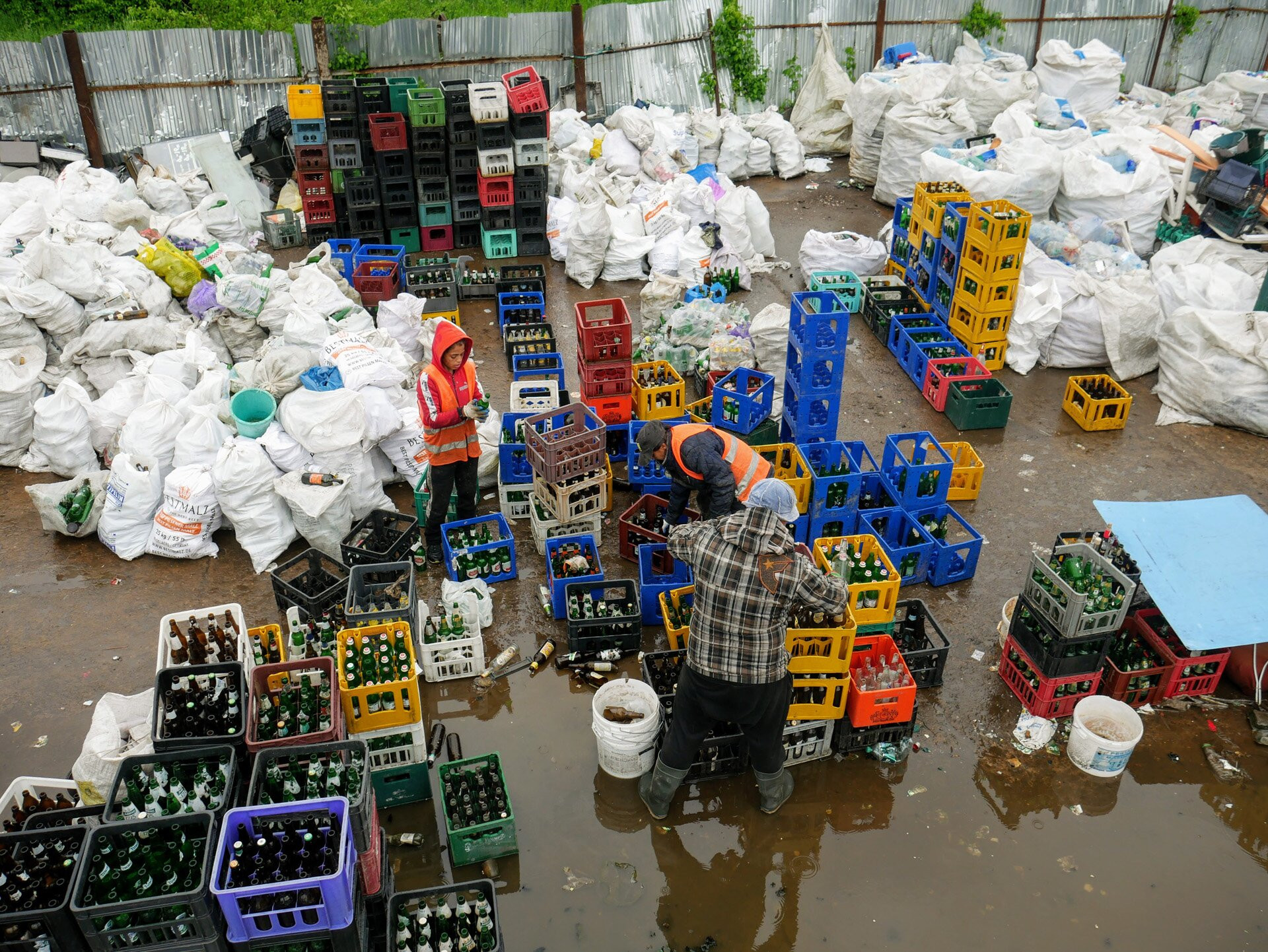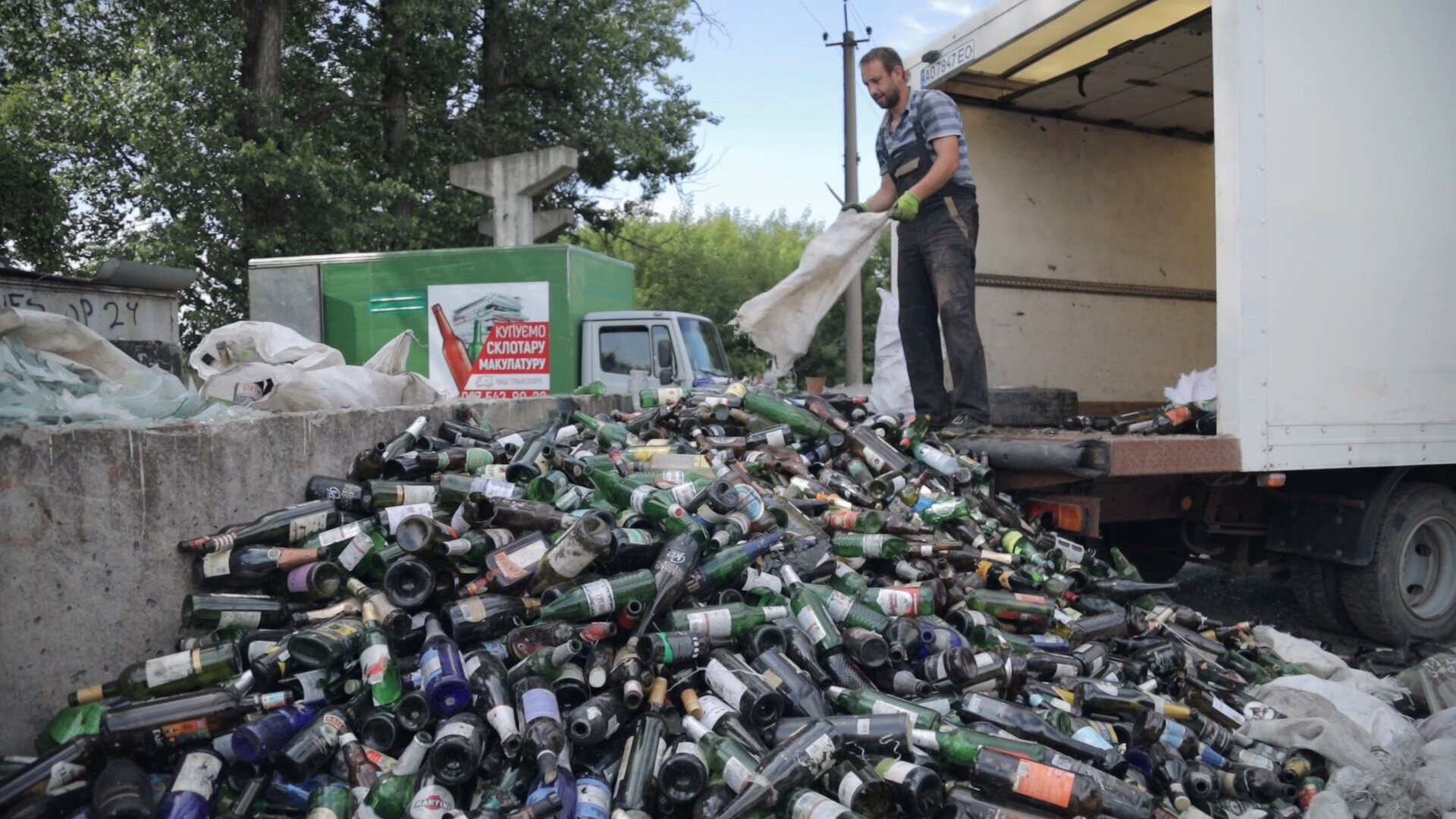 Béla üveghulladékot rak le egy feldolgozótelepen