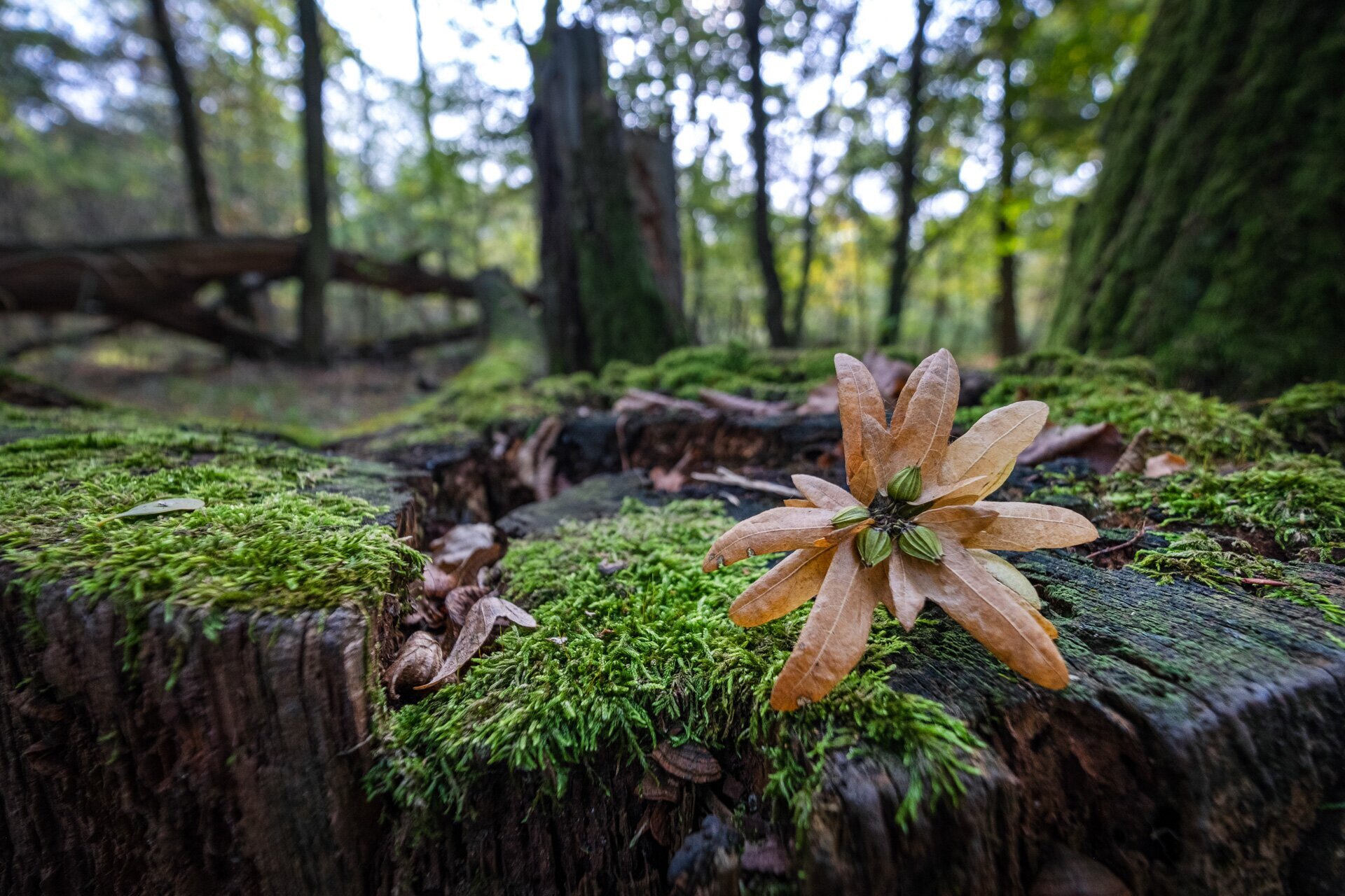 A gyertyán termése a repítőkészülékként működő kupacslevelekkel