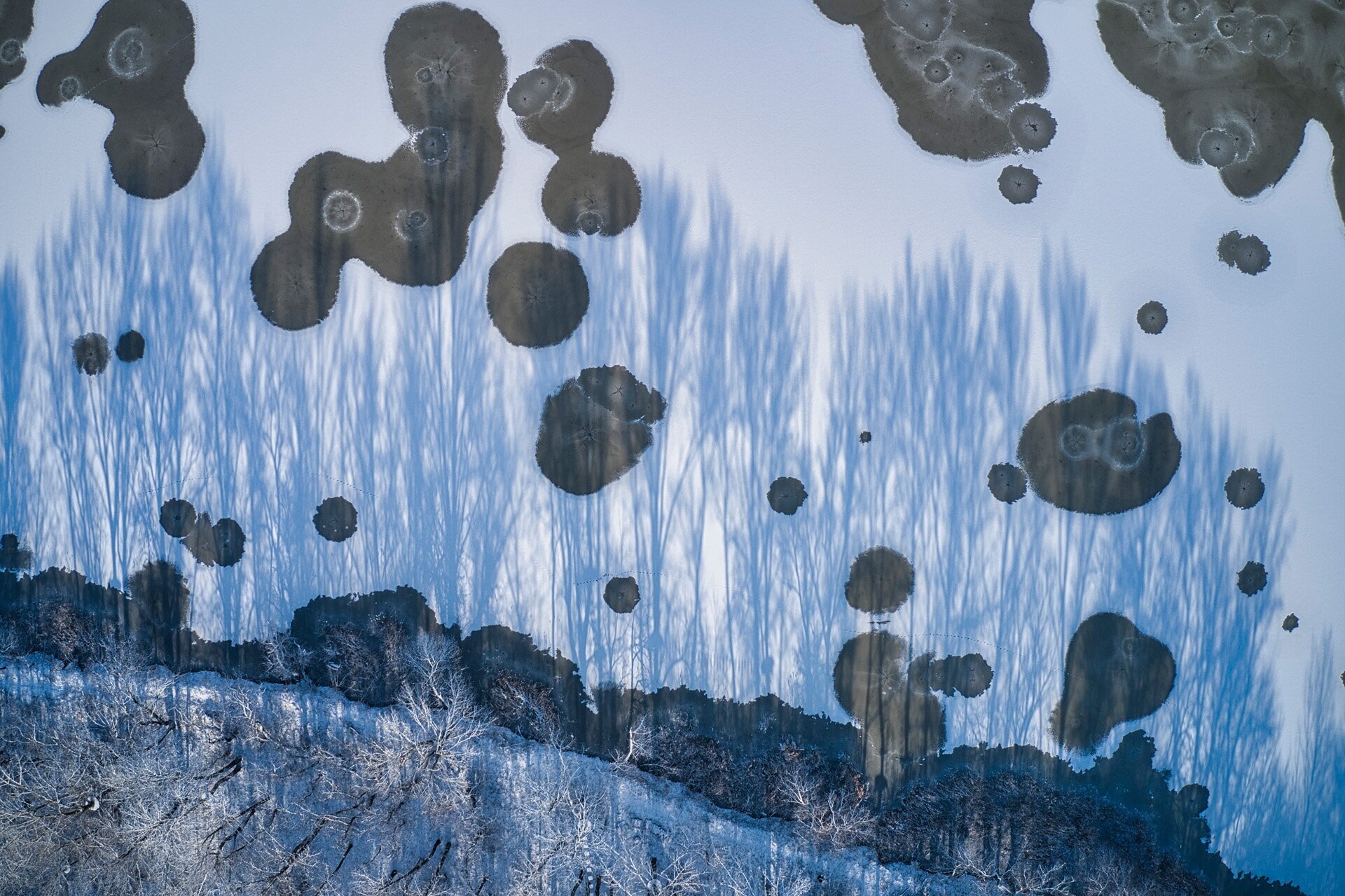 „Absztakt művészet. Mintha a jég lenne a vászon, rajta a fák sziluettjével.”