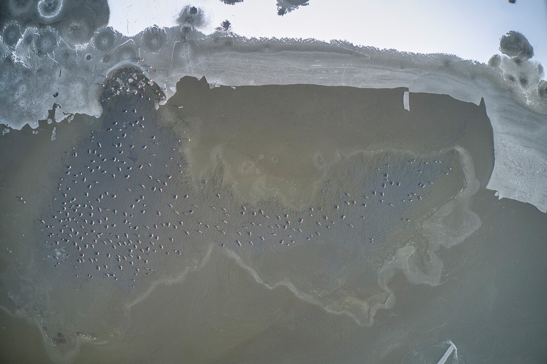 „Lihogó valahol Sarud és Poroszló között. Rengeteg vadlúd telel a Tisza-tavon idén is. Mintha évről-évre több érkezne. Ha nem épp a jégen pihennek, akkor a lihogókban tapossák játékosan a vizet, szemmel láthatóan jól fel is kavarják azt.”