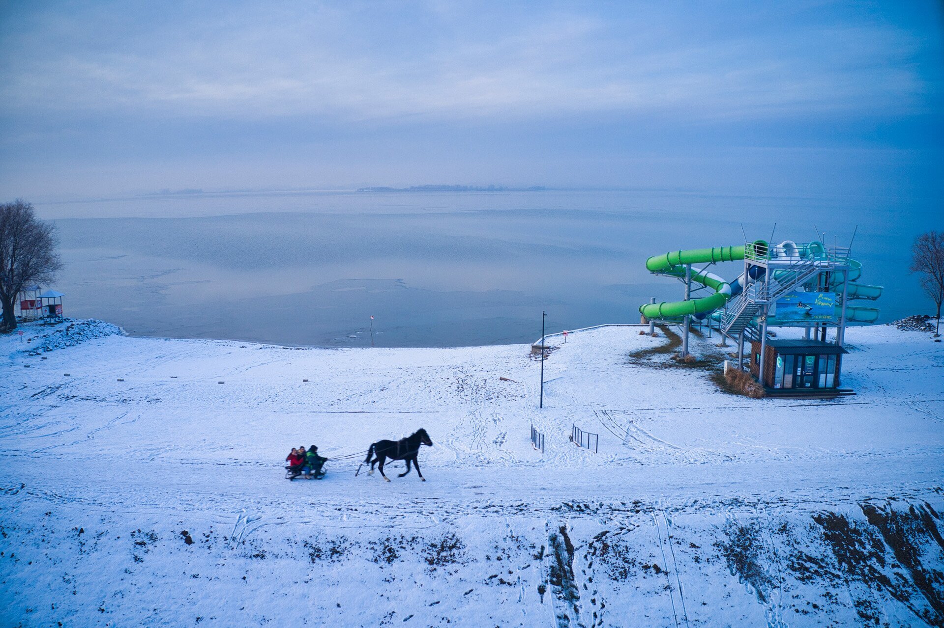 „Nyáron vízicsúszda, télen lovascsúszda. e jó, hogy 2022-ben még látni ilyen pillanatot! Ez az abádszalóki strand és a Tisza-tó tényleg olyan, mintha tenger lenne.”