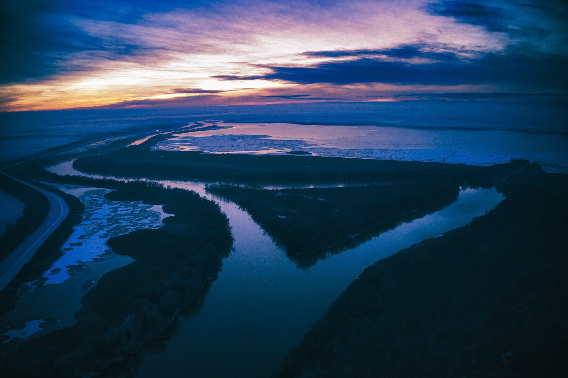 A Tisza-tó öt medencéből áll, amelyek között hol egyik, hol másik oldalon robog el a Tisza. Tiszaörvény mellett pedig nem maga a tó, hanem a szőke folyó halad el, ezért itt kezdjük túránkat, hisz Dimitry most is ide tér haza, ha a Tisza-tóhoz érkezik. A képen a tiszaörvényi partszakasz látható, ahol havas tölgyek és nyárfák szemlélik a folyót.