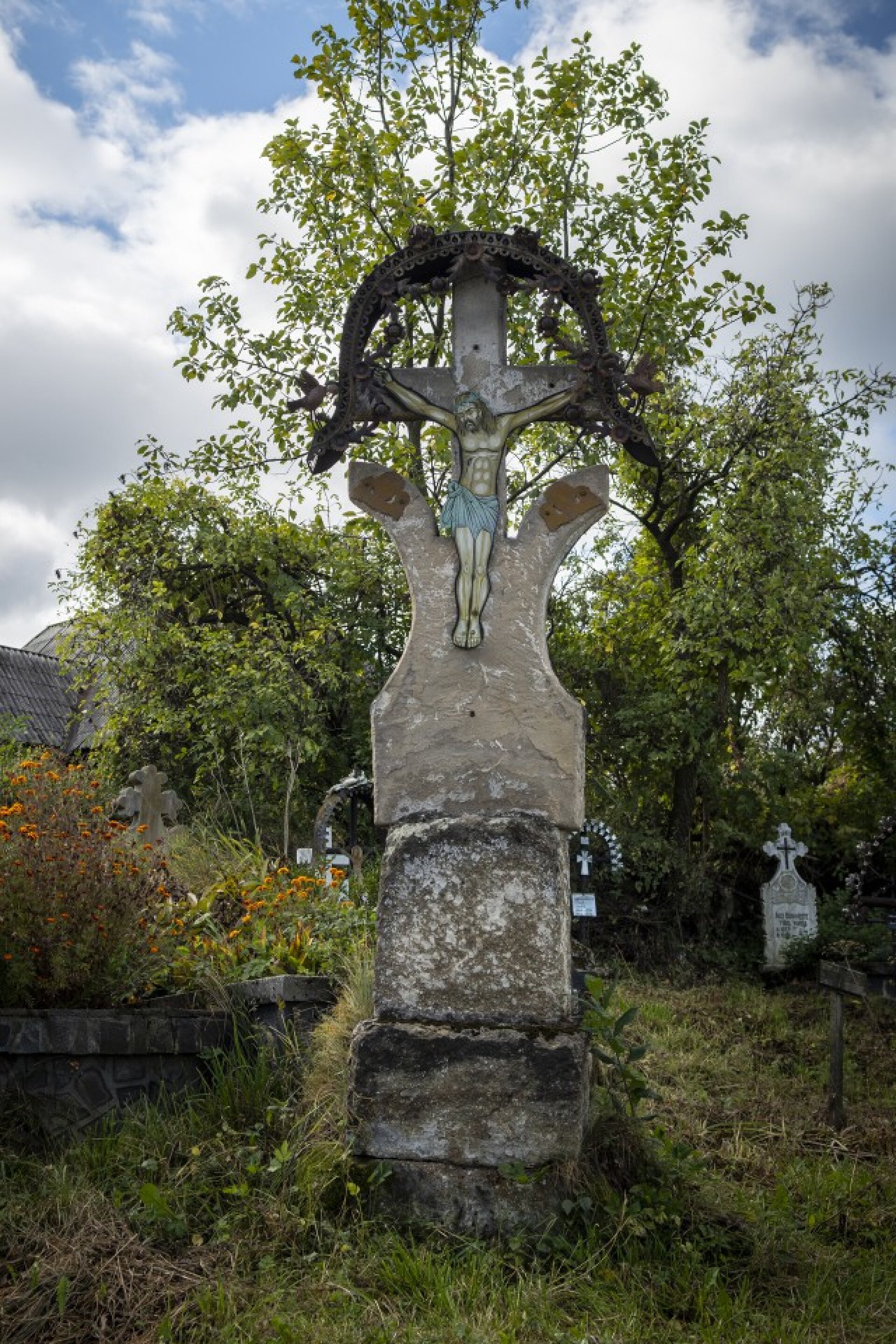 A jellegzetes, szaploncai kék színűre festett fejfák