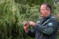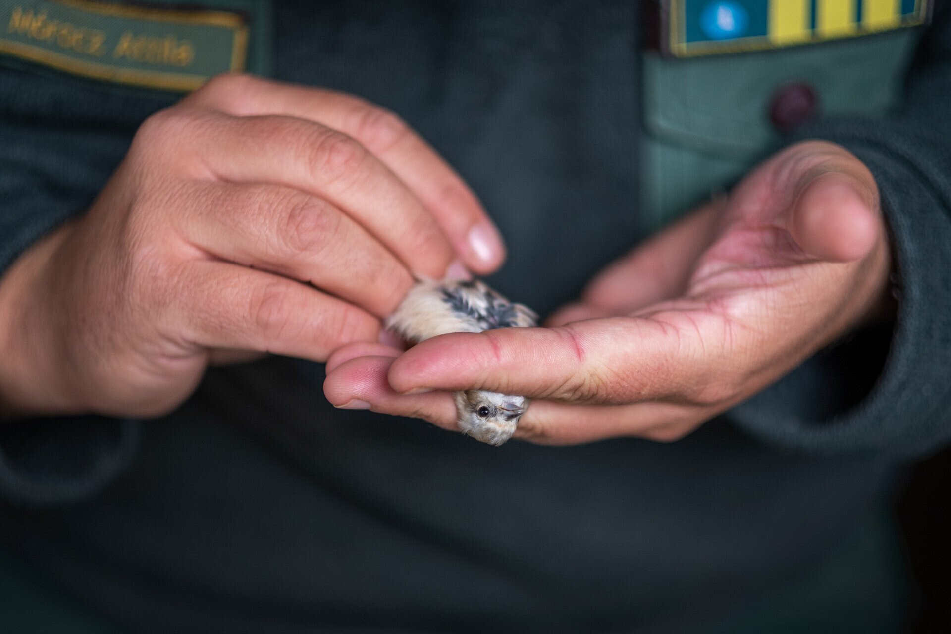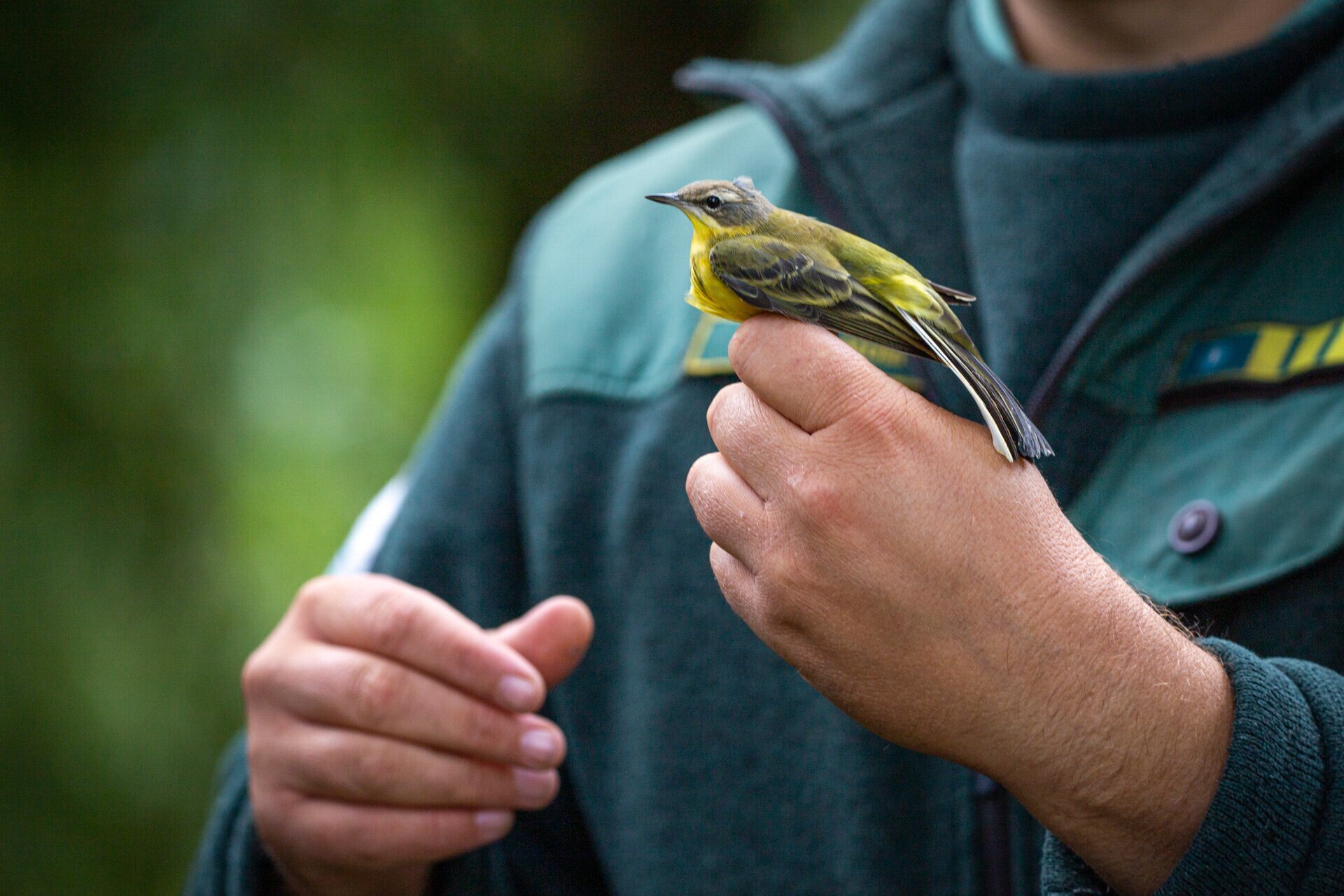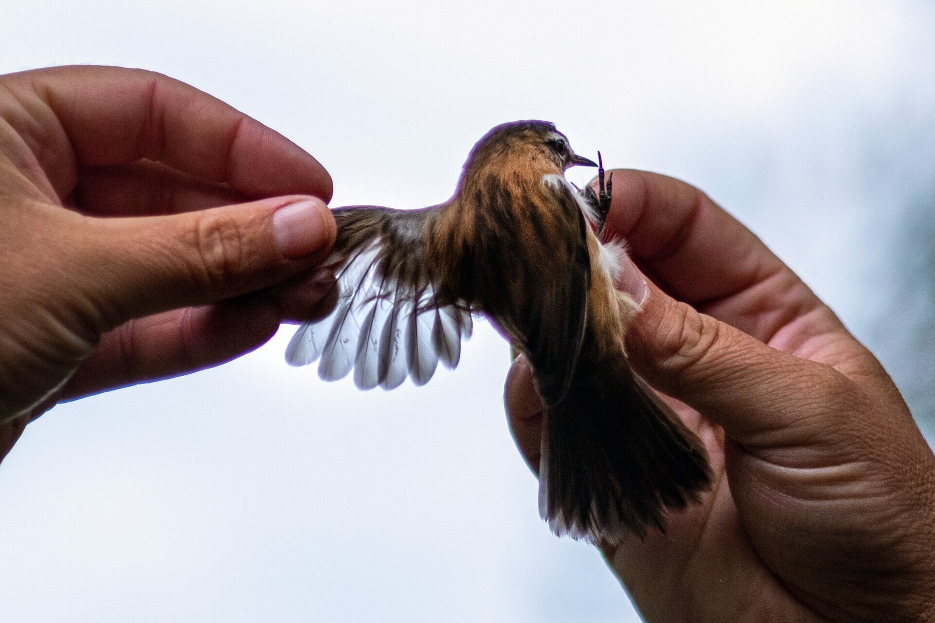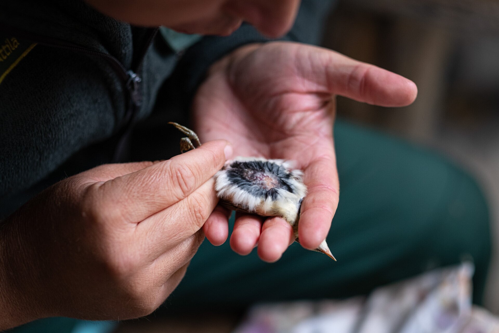 A gyűrűzők a hálóállásokat óránként végignézik, és kiszedik a hálókba repült madarakat