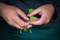 A szabadon engedés előtti pillanat. A képen egy hím barátposzátát láttok Hidvégi Brigi, a Turista Magazin szerkesztőjének kezében