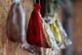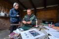 A hálóból kiszedett madarakat kis vászonzsákokba helyezve viszik a gyűrűzőhelyre