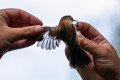 Függőcinege várja a gyűrűzős procedúrát