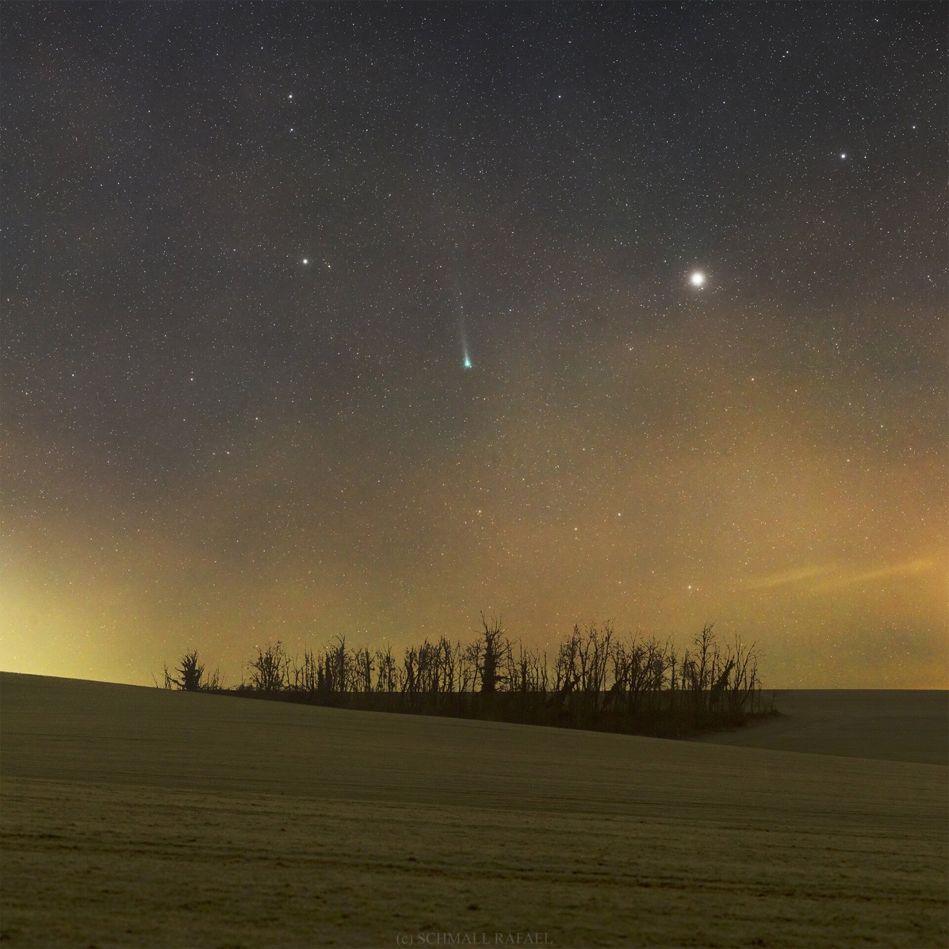 Az üstökös és az Arcturus együttállása a hajnali égbolton