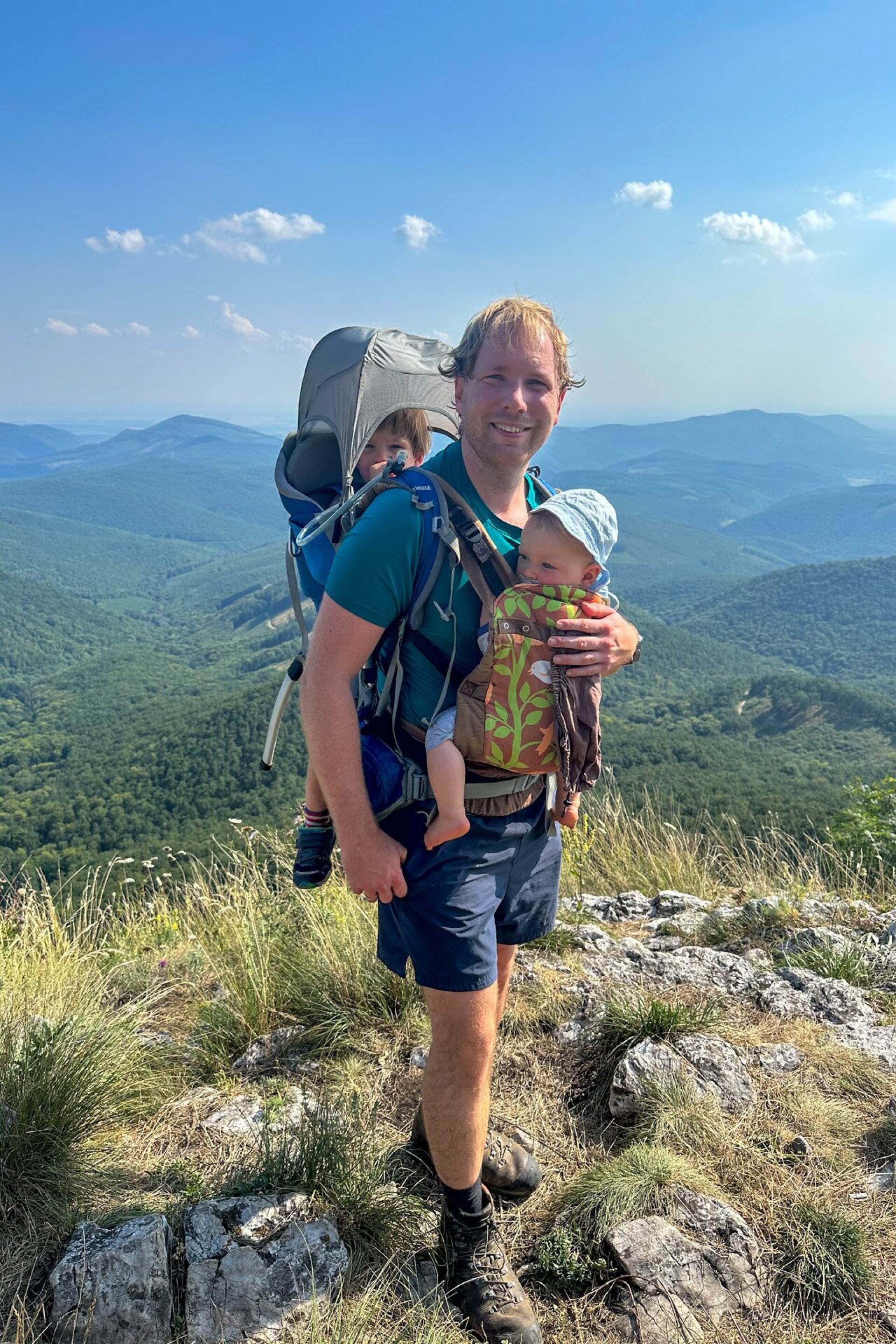 Egy gyerek elől, egy hátul - így kell kiegyensúlyozottan túrázni