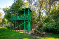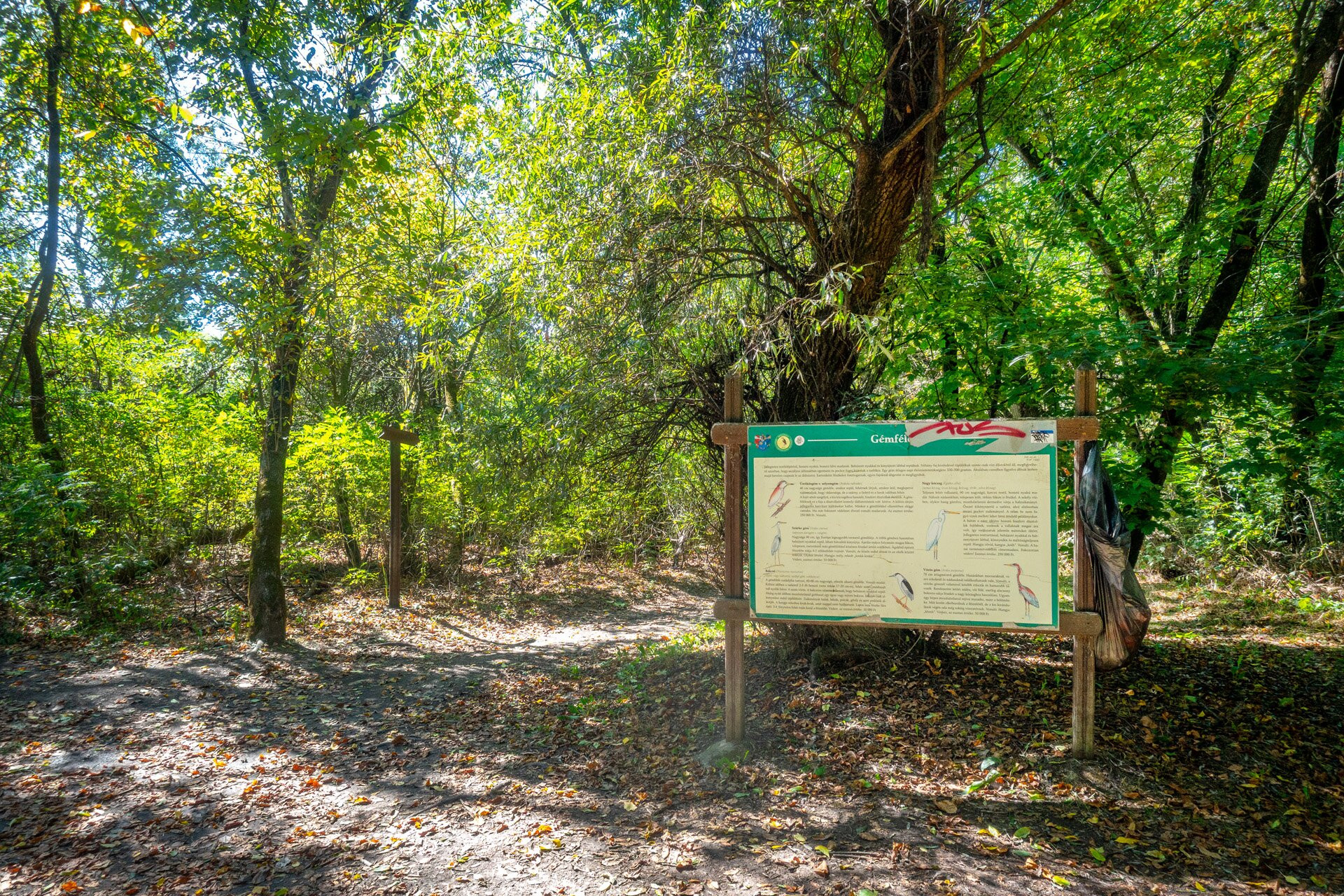 Egy mádármegfigyelőtorony áll a tanösvény kis körének fordulójában
