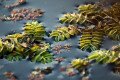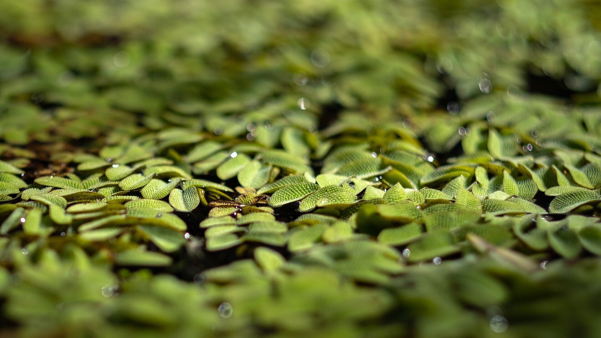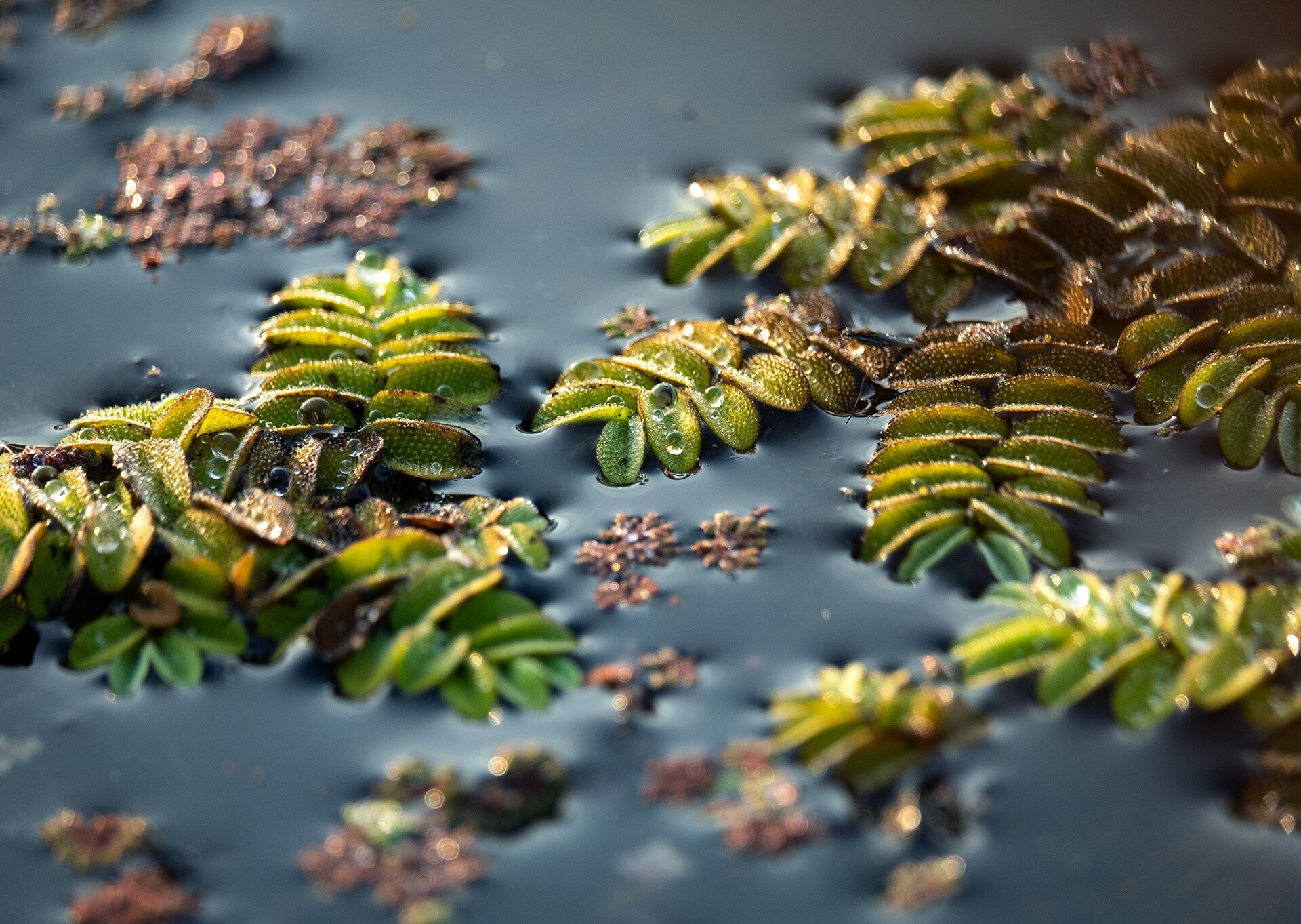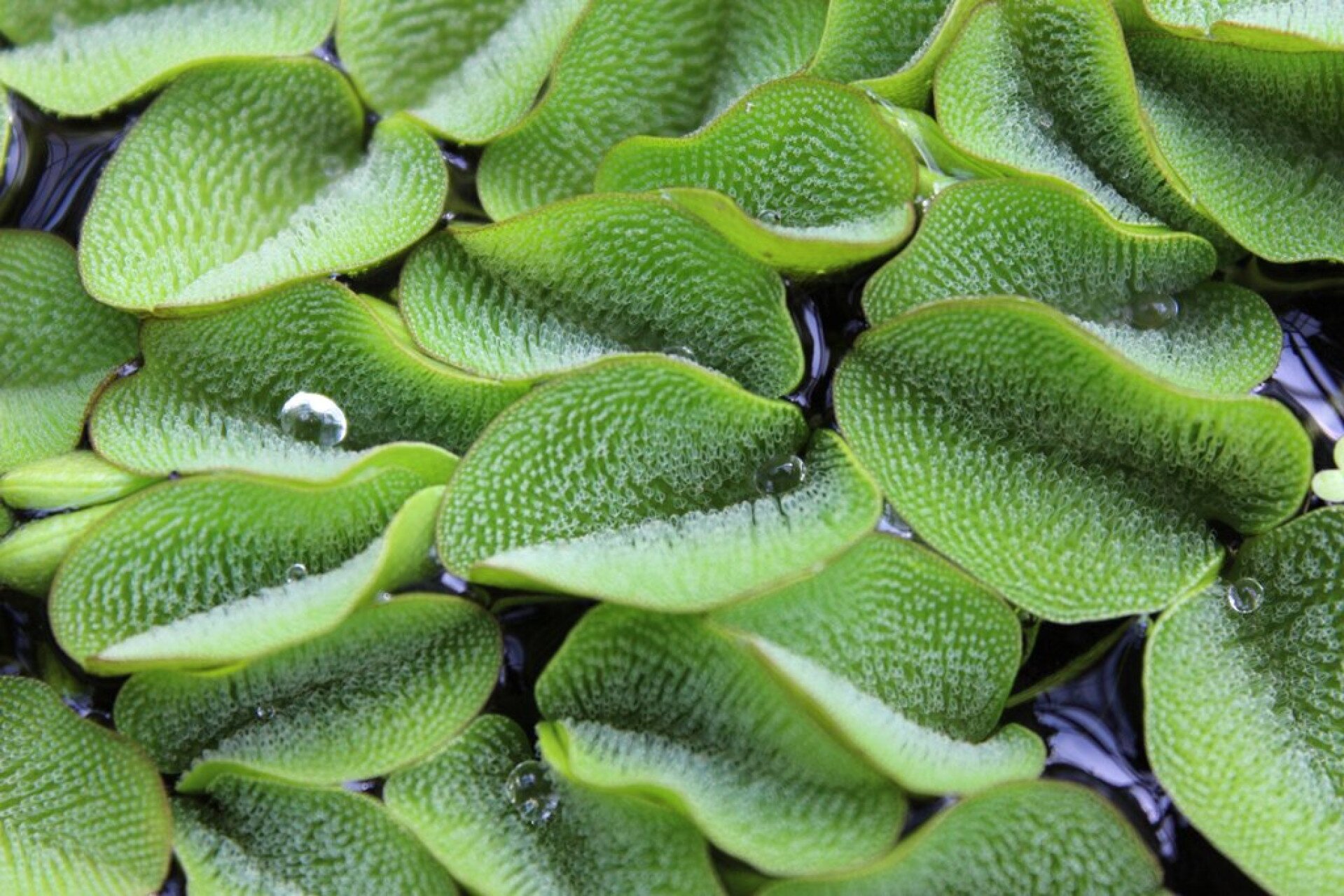 Az átellenes rucaöröm vízen lebegő levelei közelről