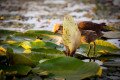 Ritka pillanat egy törpegémről, amely általában a nádszálakon, akrobata módon közlekedve jár-kel. Ezúttal a Tisza-tó hinárnövényzetén kutatott zsákmány után