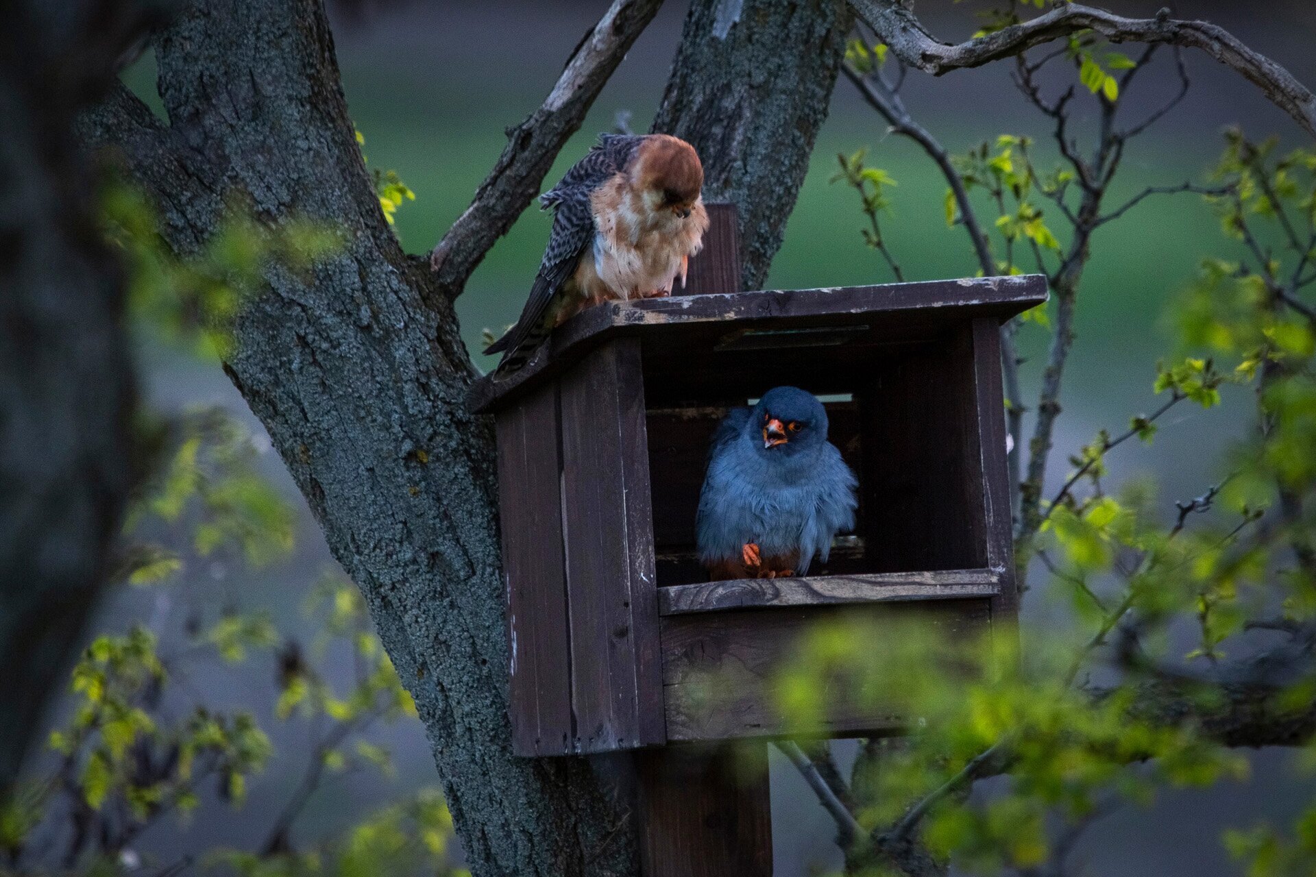 Kékvércse-pár nászidőszakban a hortobágyi Szálkahalmi tanösvény varjútelepén