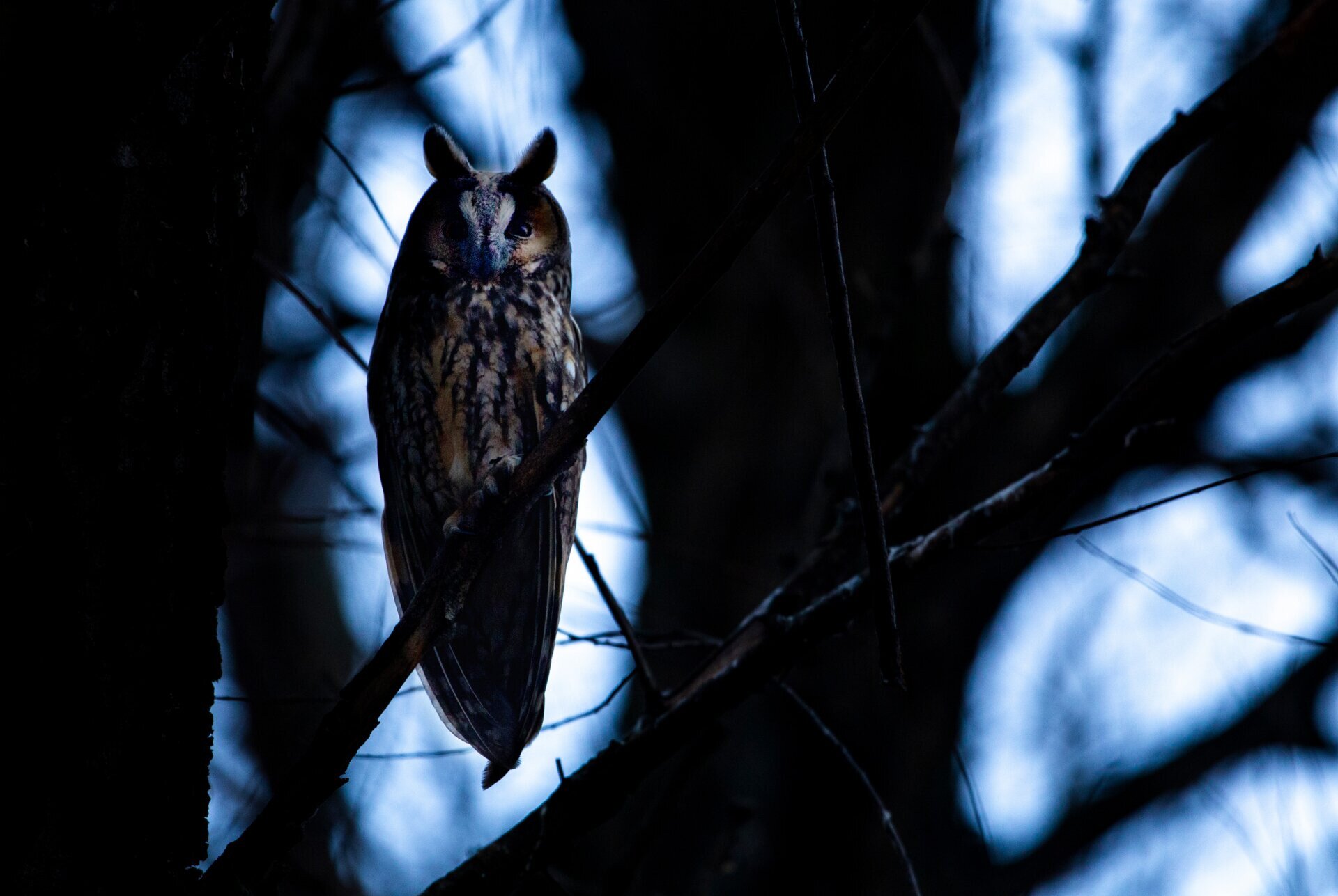 Telelő erdei fülesbagoly a csongrádi Tisza-parton