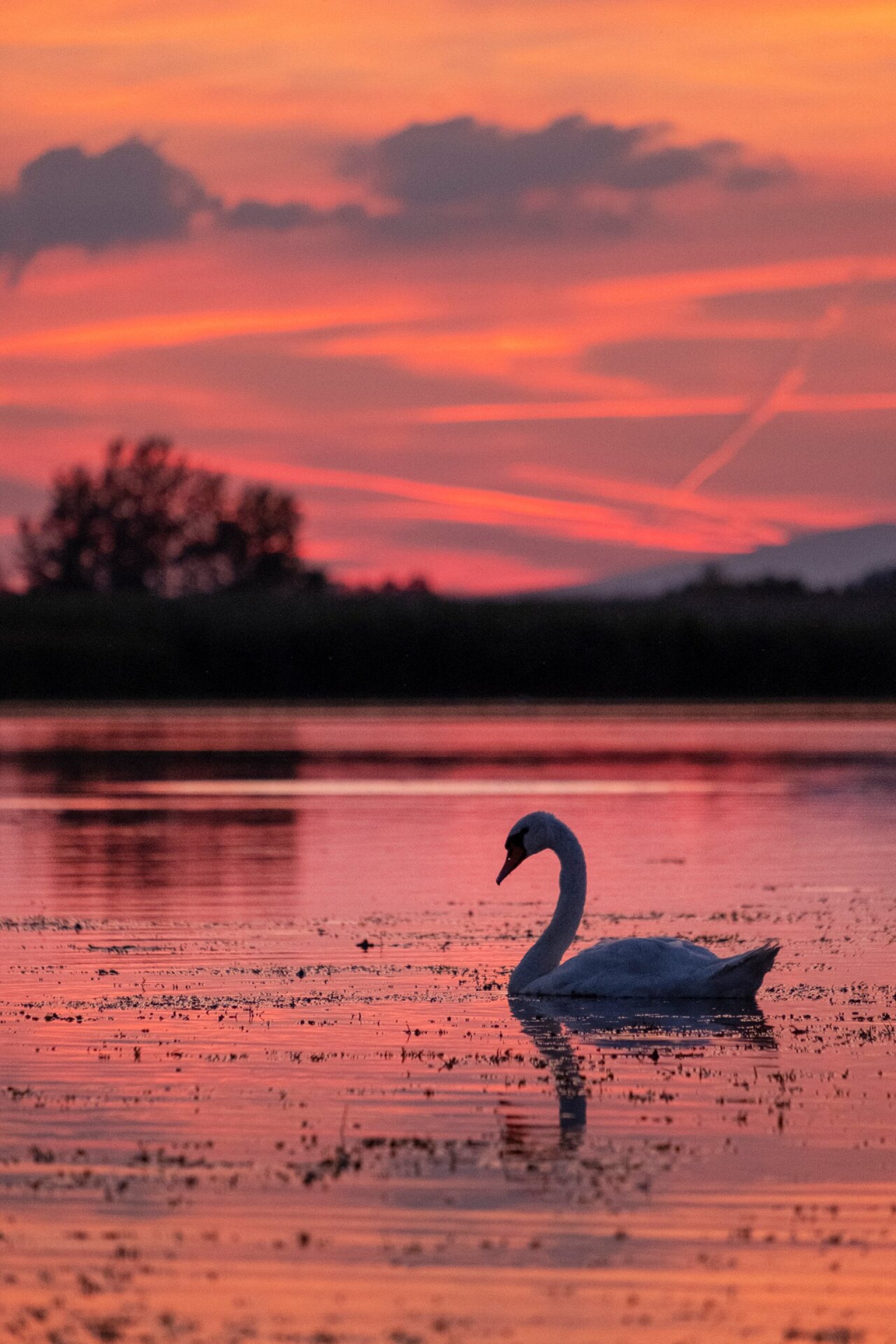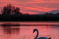 Bütykös hattyú a naplemente utáni pazar színekben a Tisza-tavon