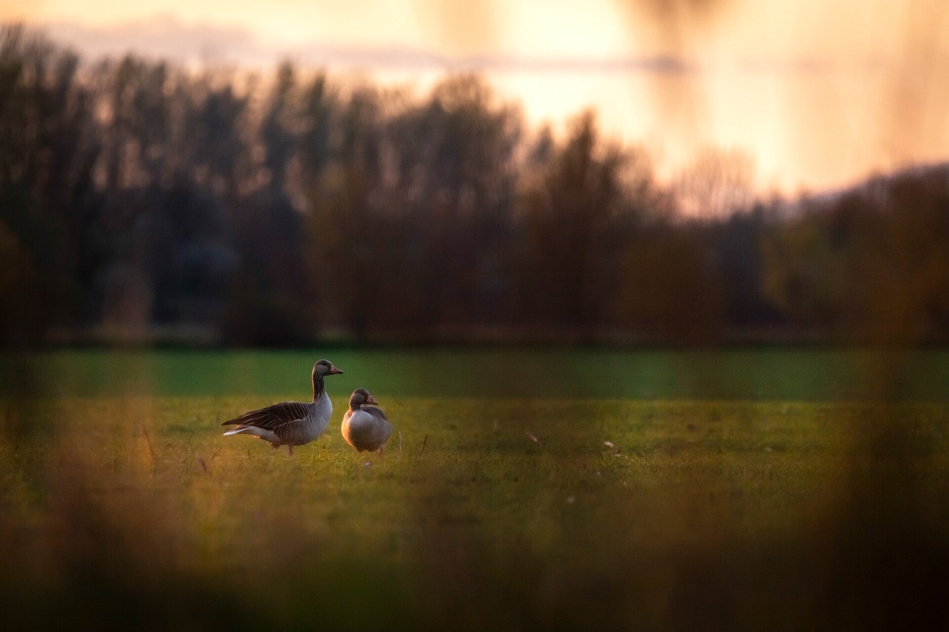 Nyári ludak esti fényben a Poroszló melletti egyik szántón