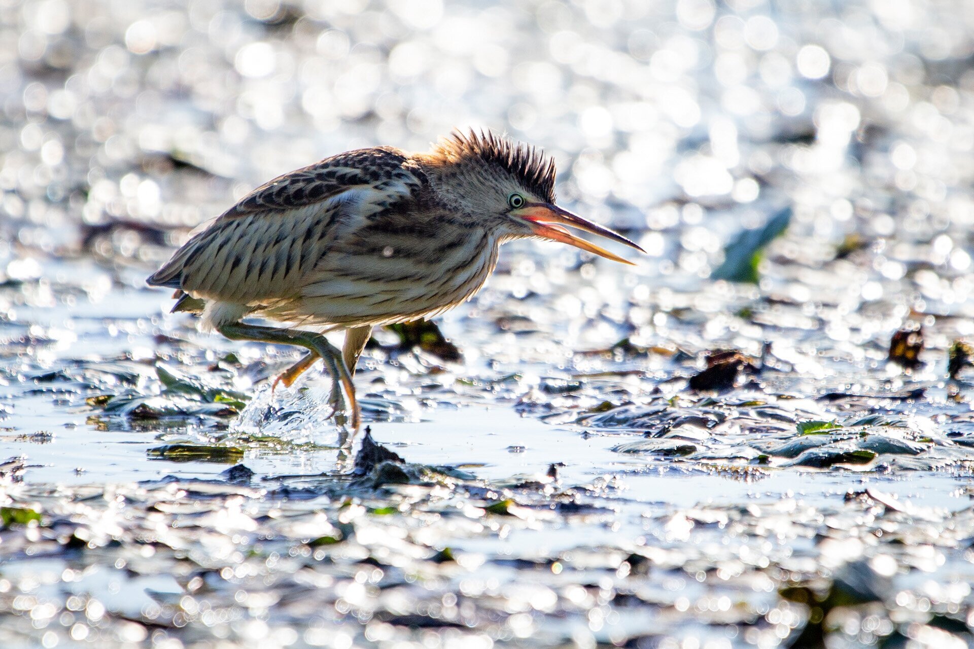 Üstökösgém a Tisza-tó hínárnövényzetén kimért léptekkel keresi halvacsoráját