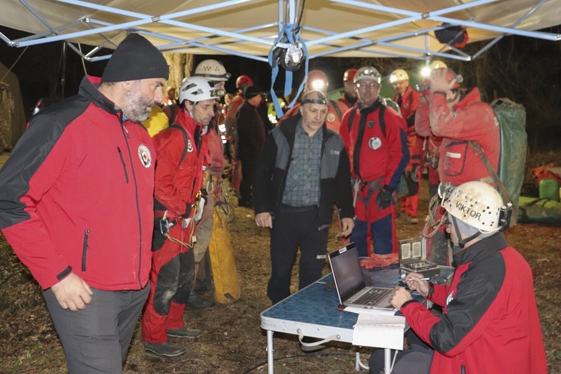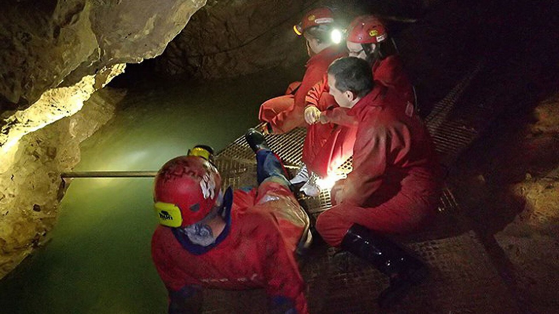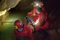 Pihenő a búvárfelszerelés nélkül elérhető végponton, a Reménytelen Szifon fölött, 2014-ben egy vezetett túrán a Kossuth-barlangban