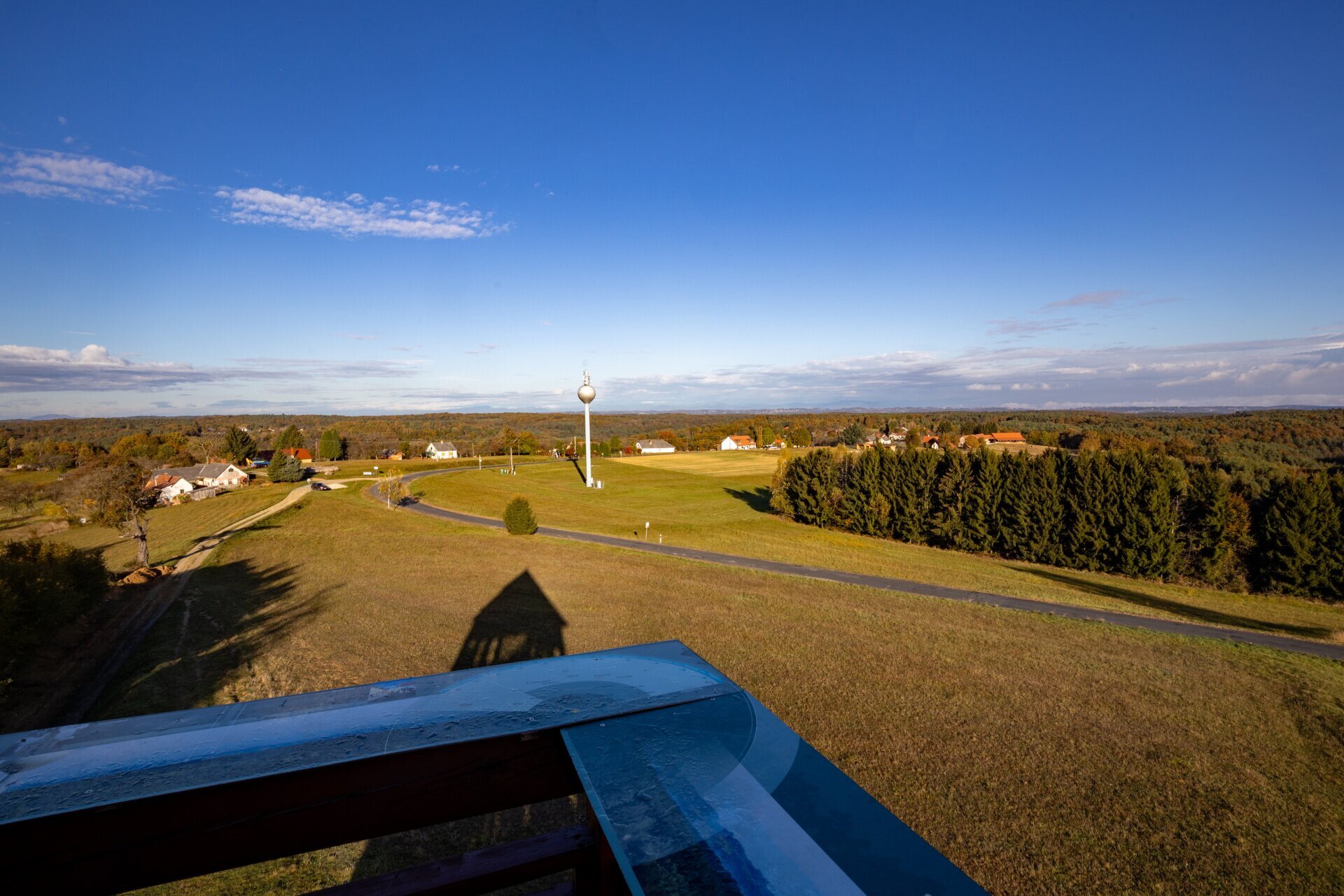 A kilátó teraszáról az Őrség szelíd lankáira tapaszthatjuk a tekintetünket