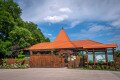 A bejárat előtt autóknak és egy busznak is kialakítottak parkolóhelyeket