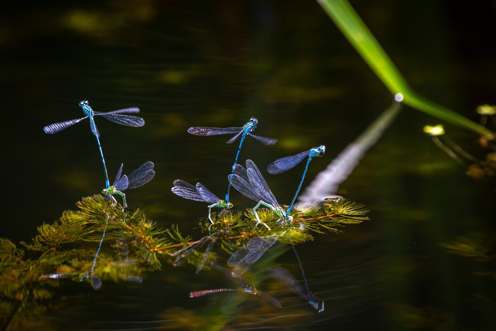 A szitakötő hímek a tarkójuknál ragadják meg a nőstényeket, és a párzás után is még így maradnak, míg a nőstények le nem rakják a petéket