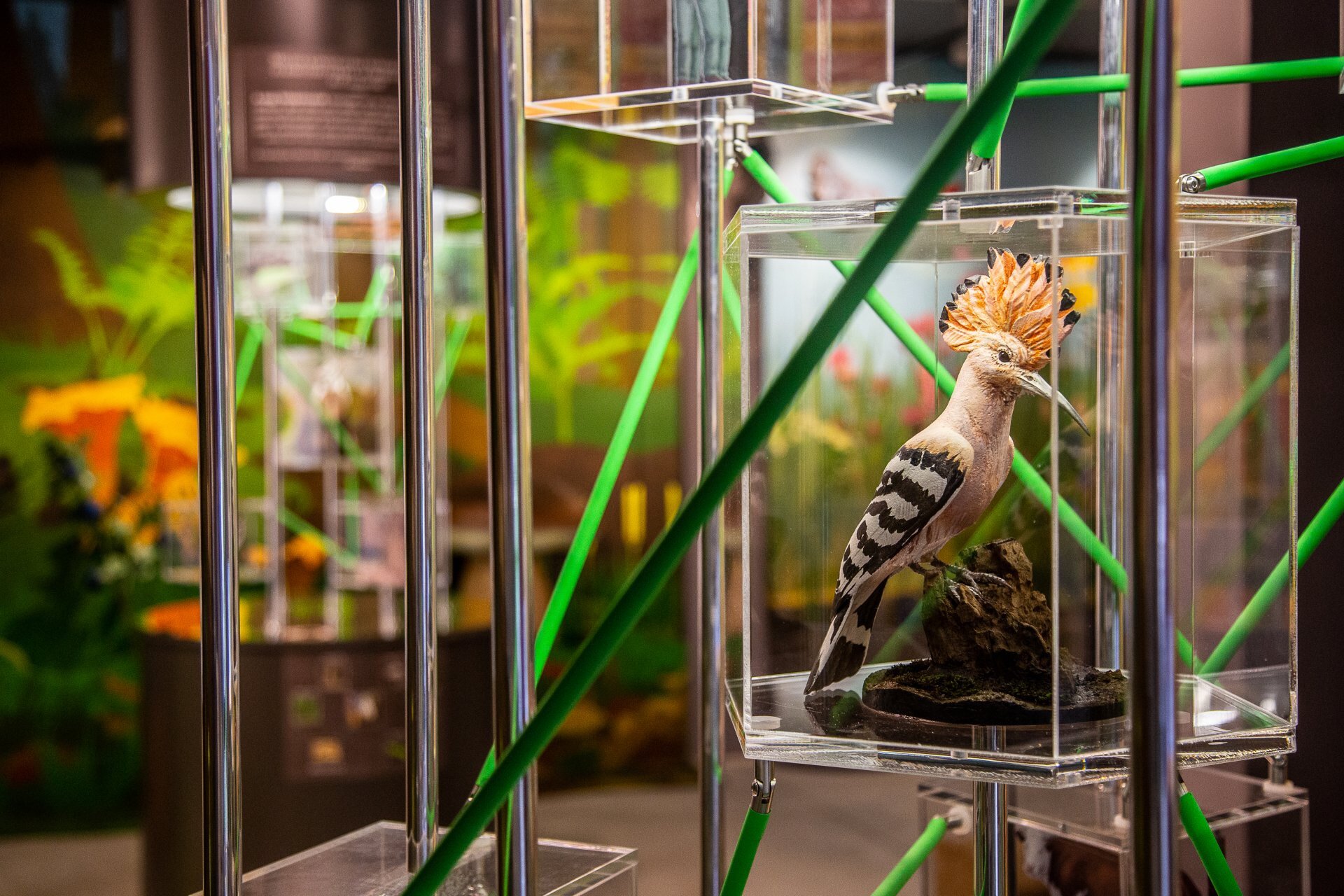 Részlet az Őrségi Nemzeti Park Igazgatóság nemrég átadott Natura 2000 látogatóközpontjának kiállításáról. A búbosbanka mellett sok-sok érdekesség várja itt a látogatókat