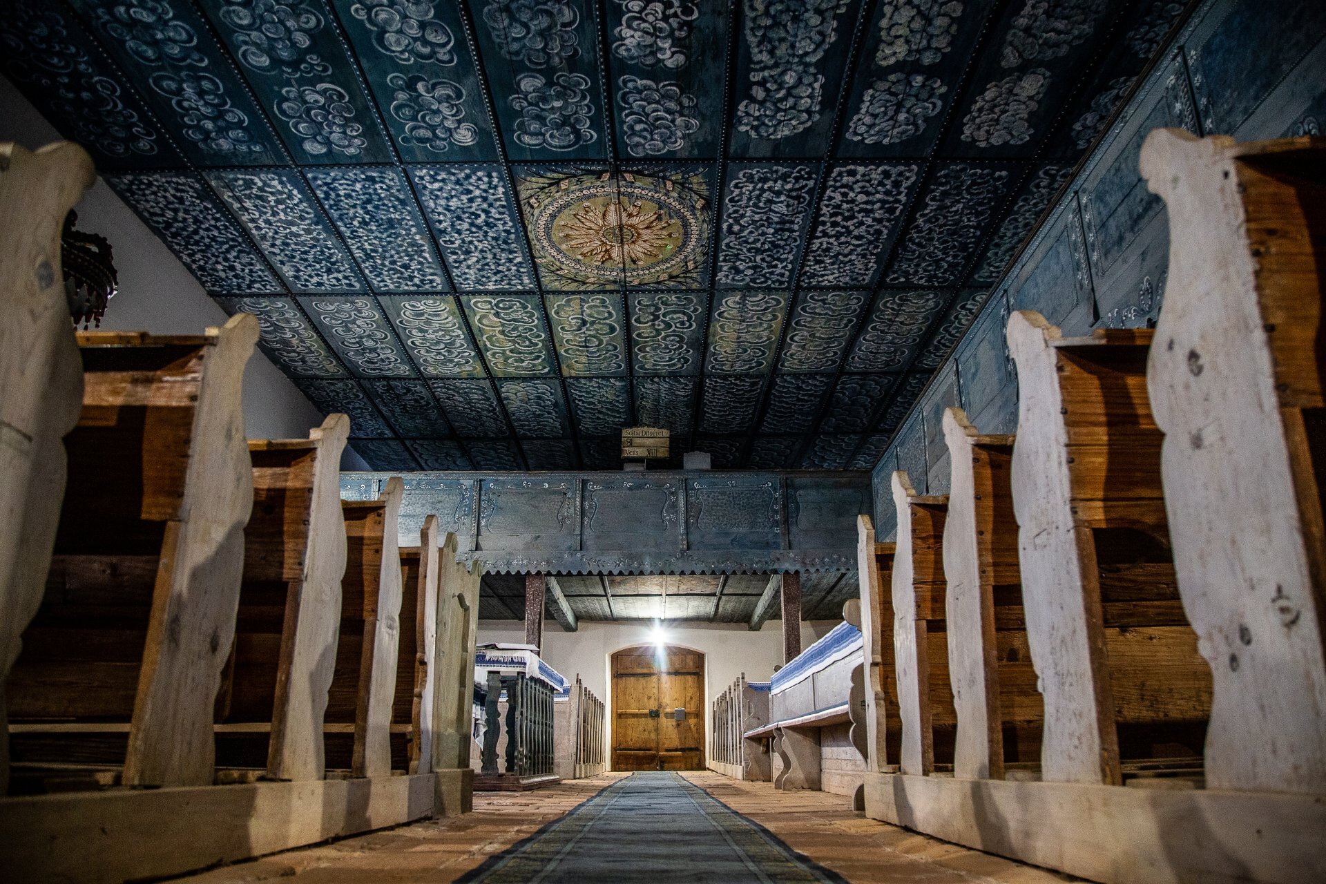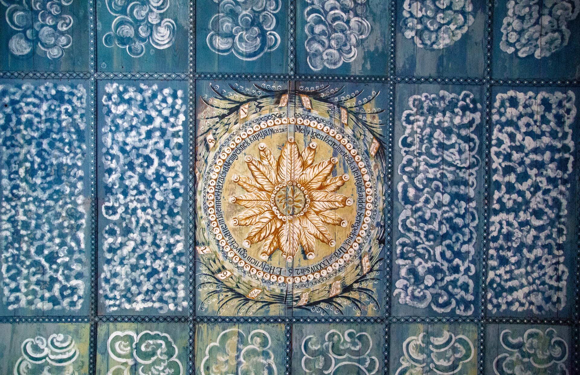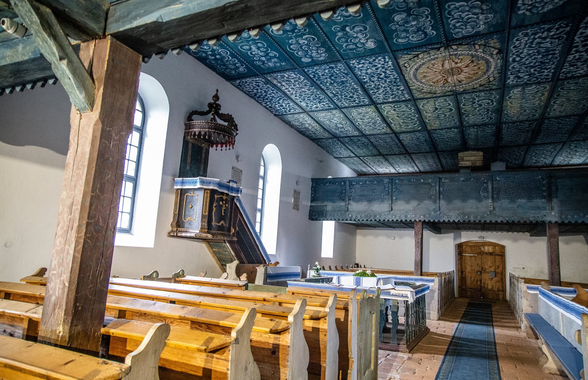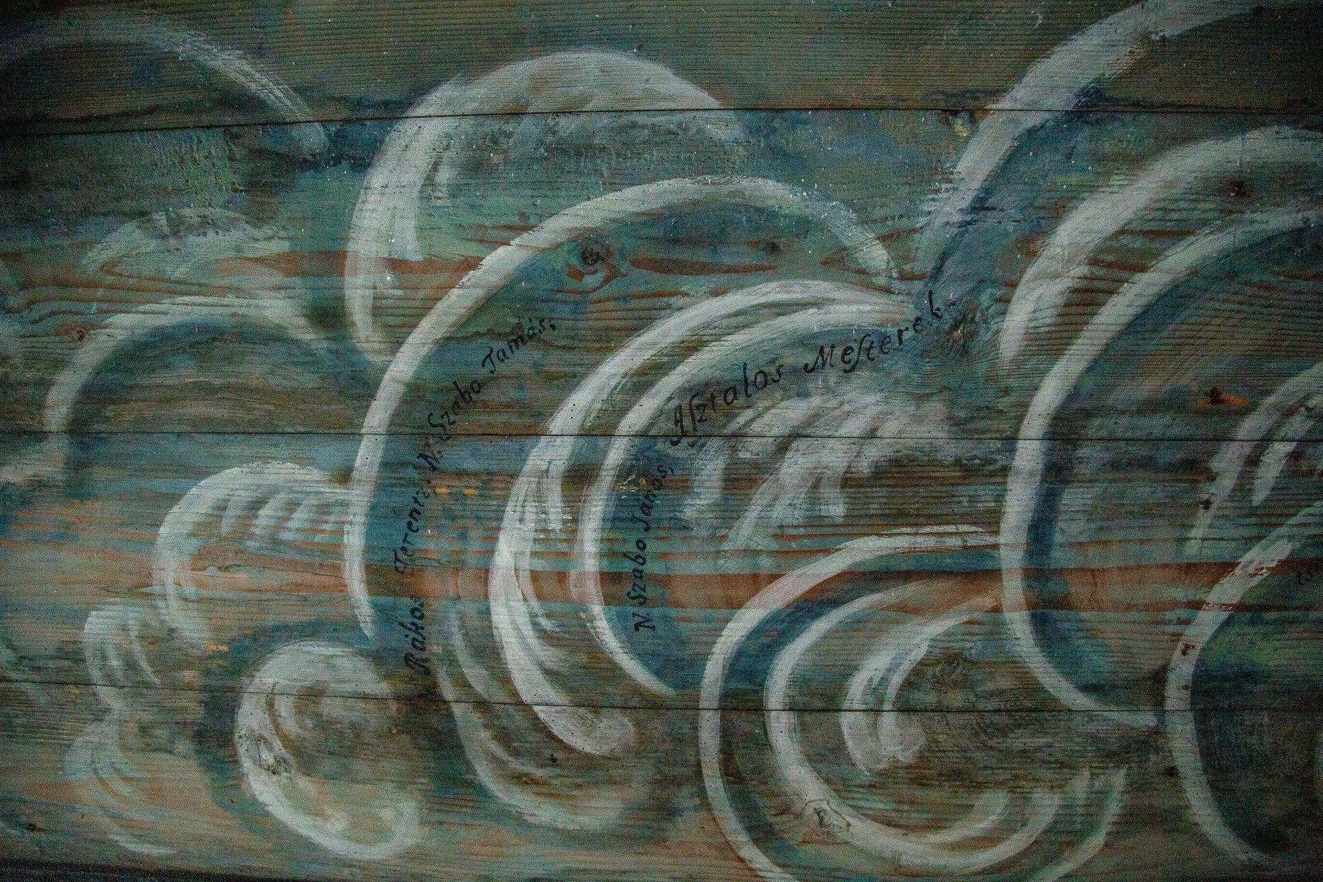 A fakazettás mennyezetet három helyi asztalos, a festést pedig a falu nyugdíjas tanítója készítette