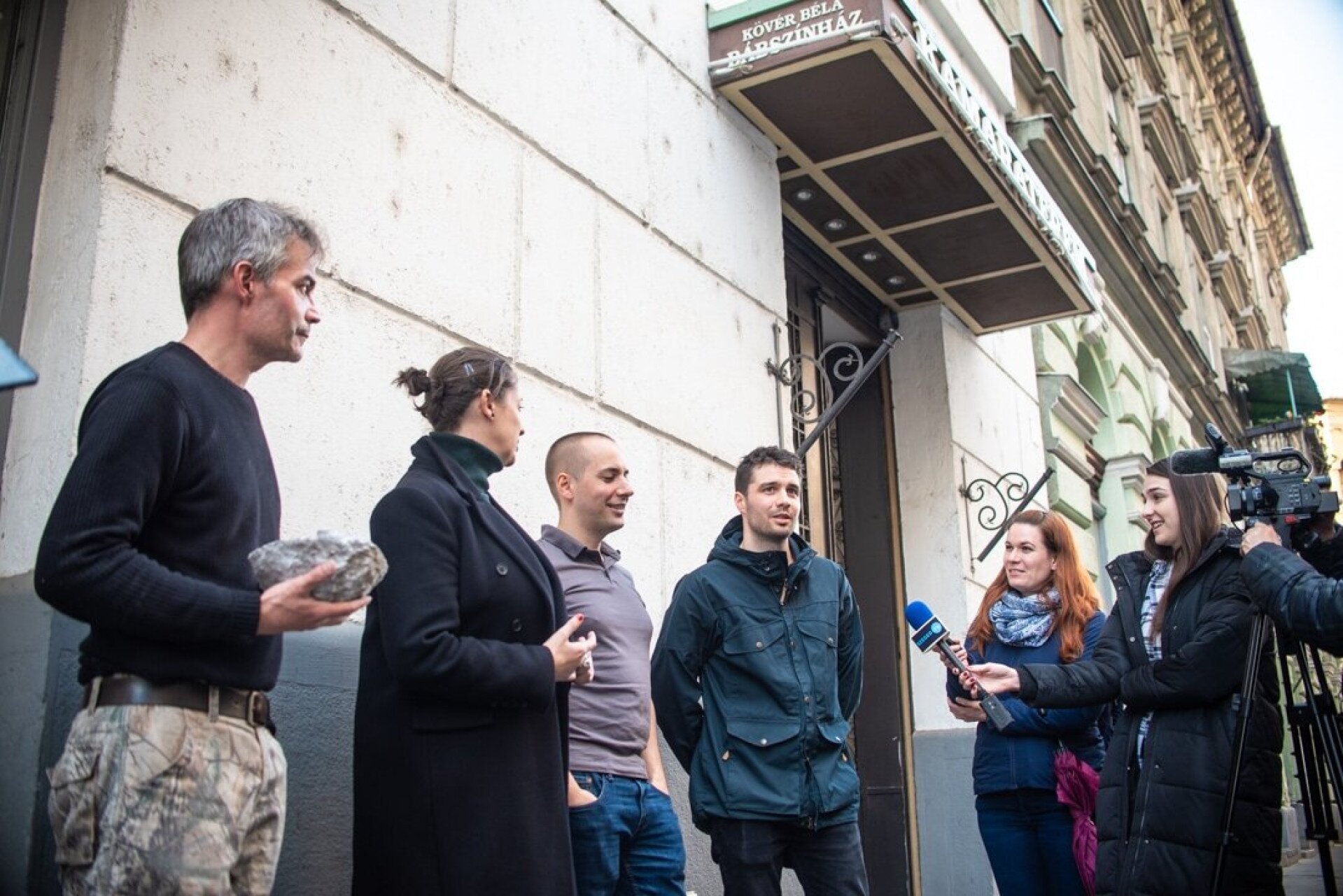 Ézsiás Tamás itt épp a szegedi Kövér Béla Bábszínháznál válaszol a sajtó kérdéseire. Az egyesület és a bábszínház együttműködése nyomán fecskék számára helyeztek fel műfészkeket a színház falára.