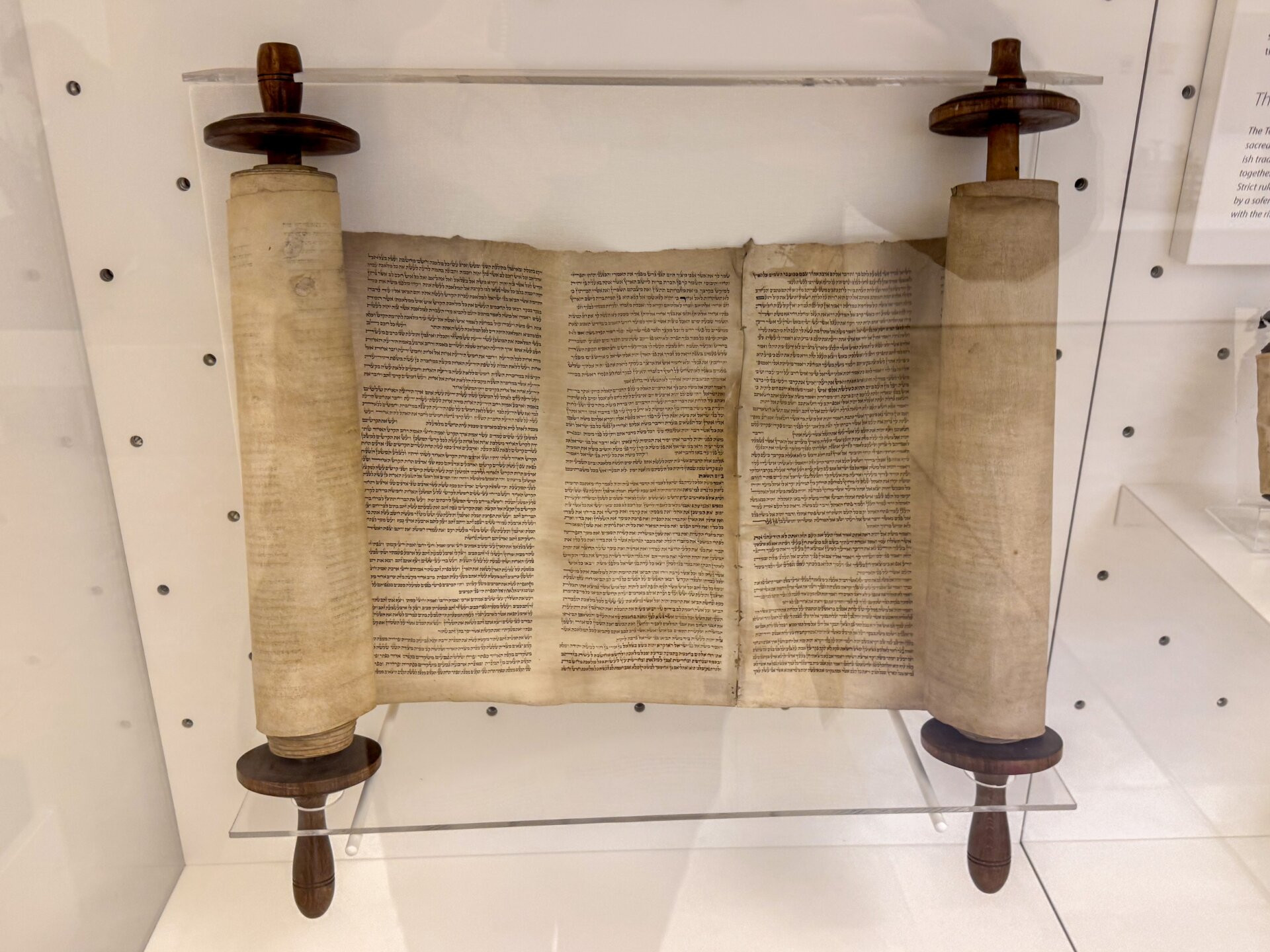 A Tóra – ez a kiállított példány nem kóser, és csak edukációs céllal lehet mutogatni