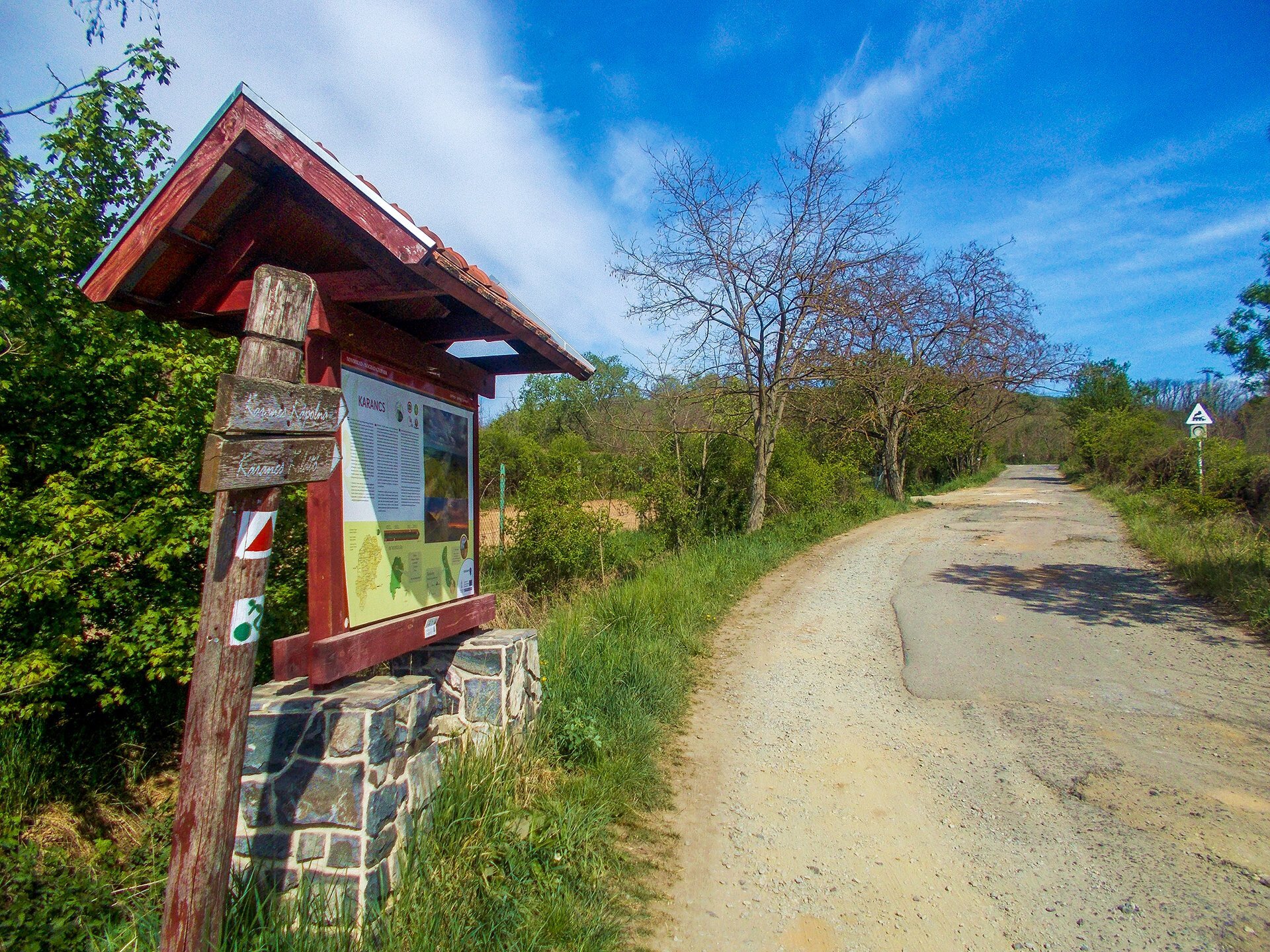 Tájékoztató tábla a régi bányaút szerpentinjén