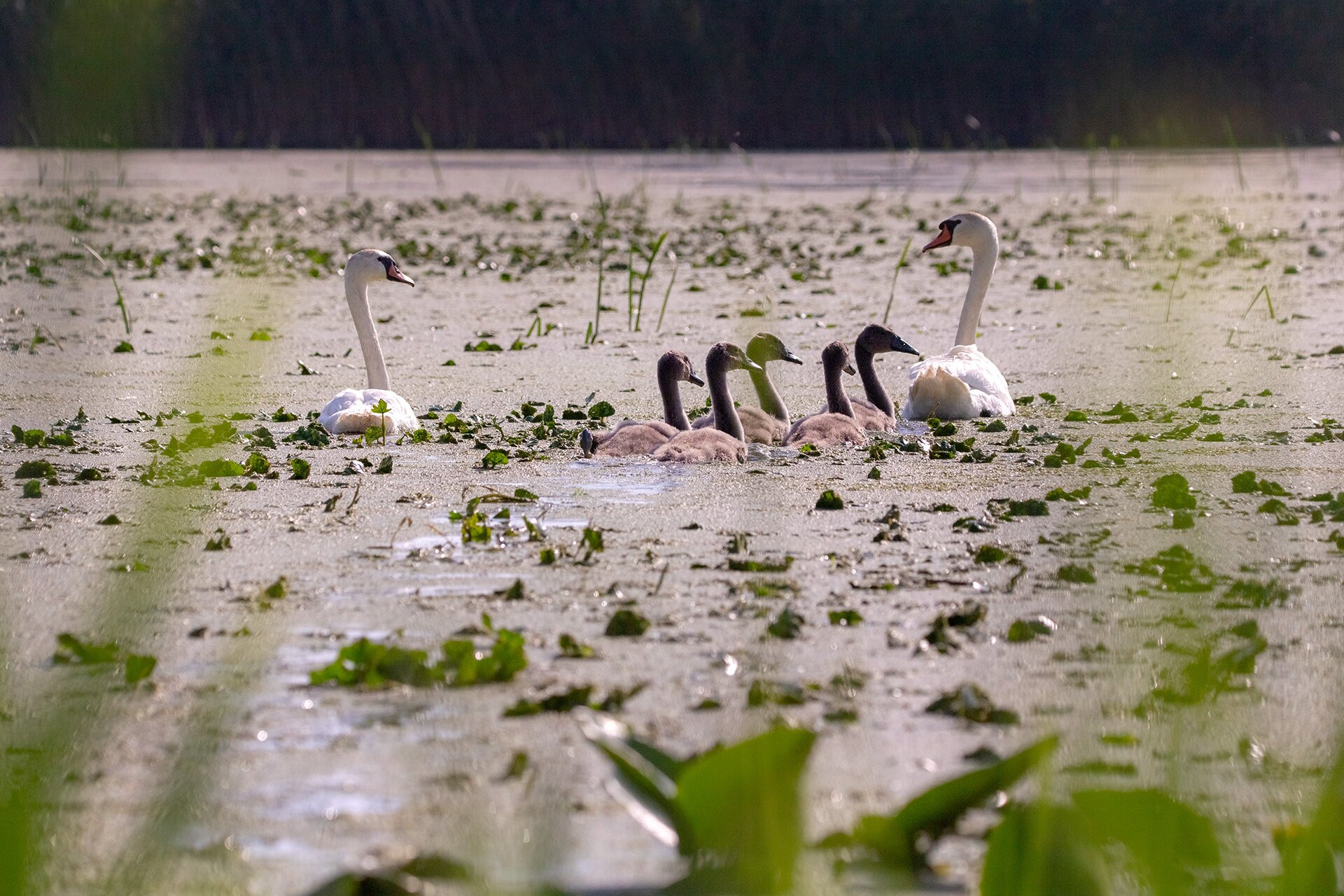 Van egy bütyköshattyú-család is a területen, idén 5 fiókát nevelnek