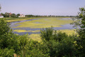 A Hortobágy-Berettyó, a képen bal oldalon látható főmedre az erősebb sodrás miatt nem hínárosodik